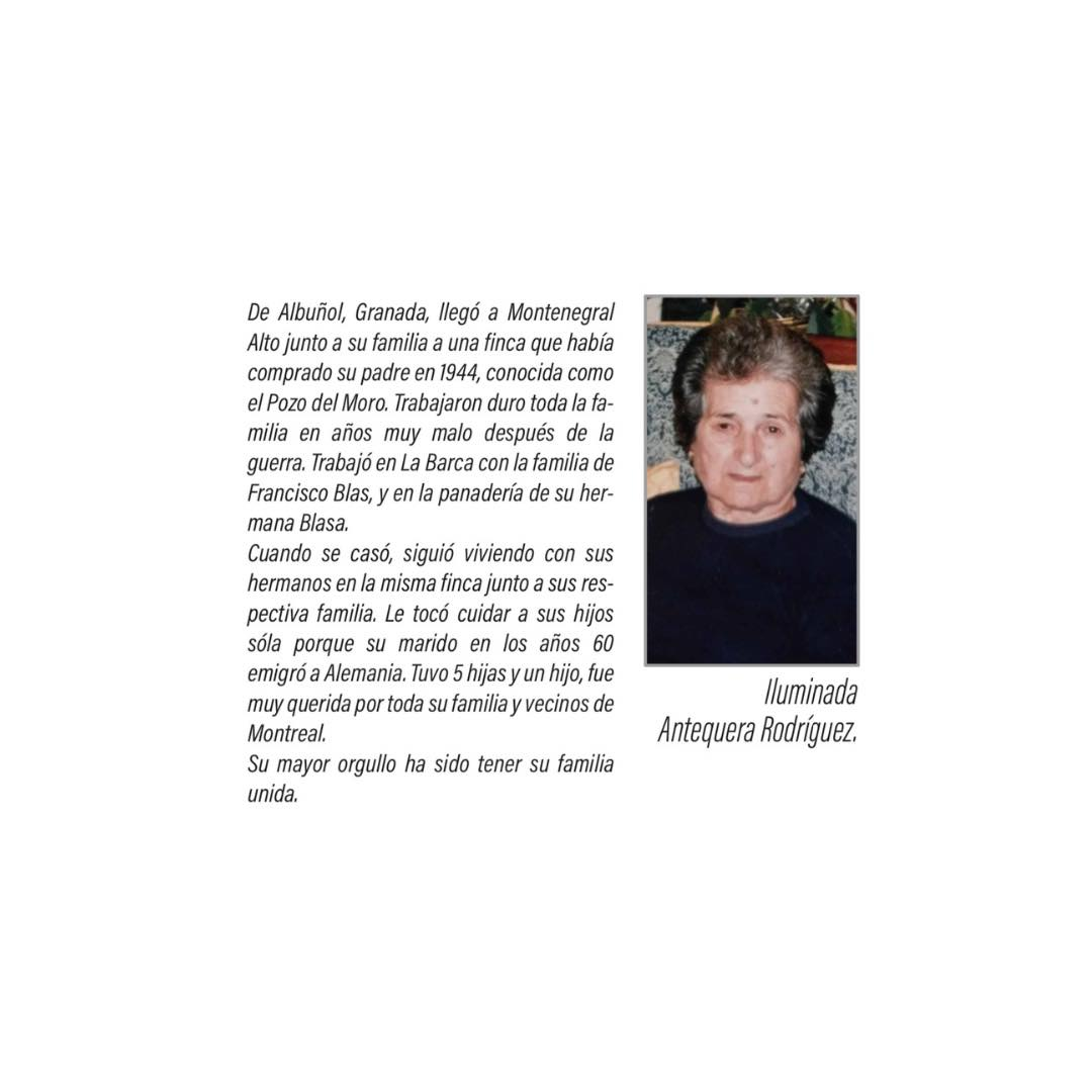 Se dedica este día a Iluminada Antequera Rodríguez, quien llegó junto a su familia a residir en la finca conocida como el Pozo del Moro.