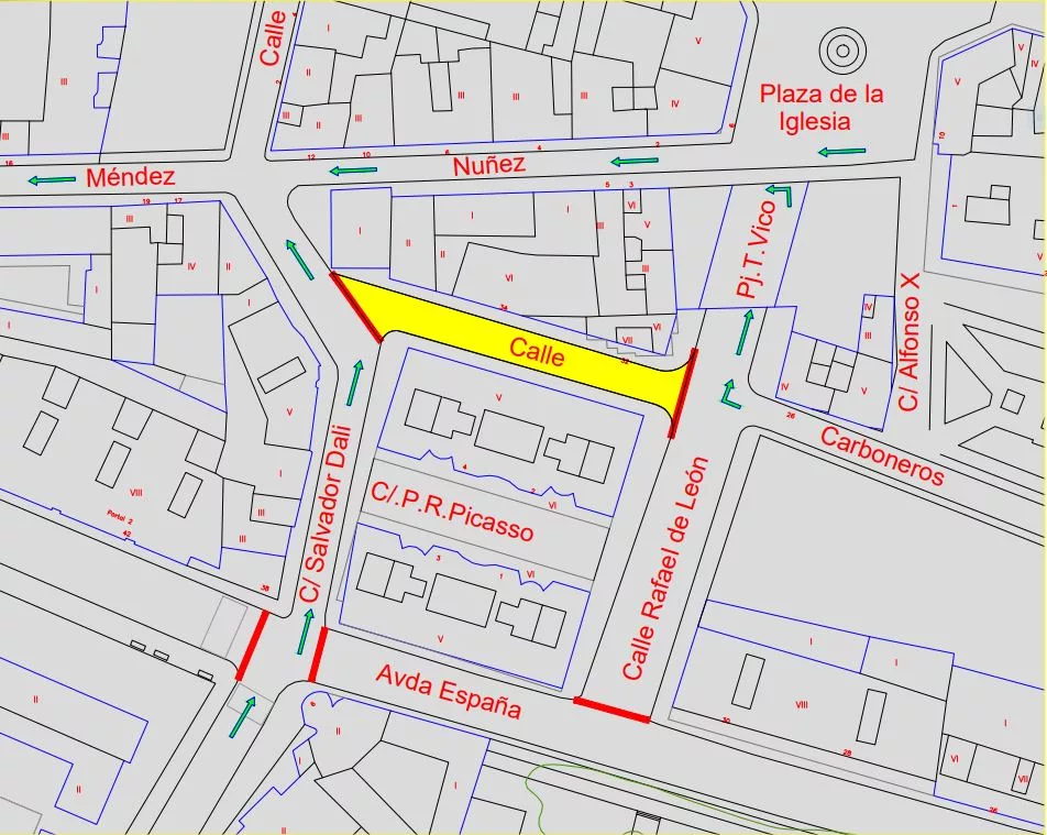 El 9 de octubre se interrumpirá la circulación en la calle Carboneros por las obras de reurbanización de la avenida de España