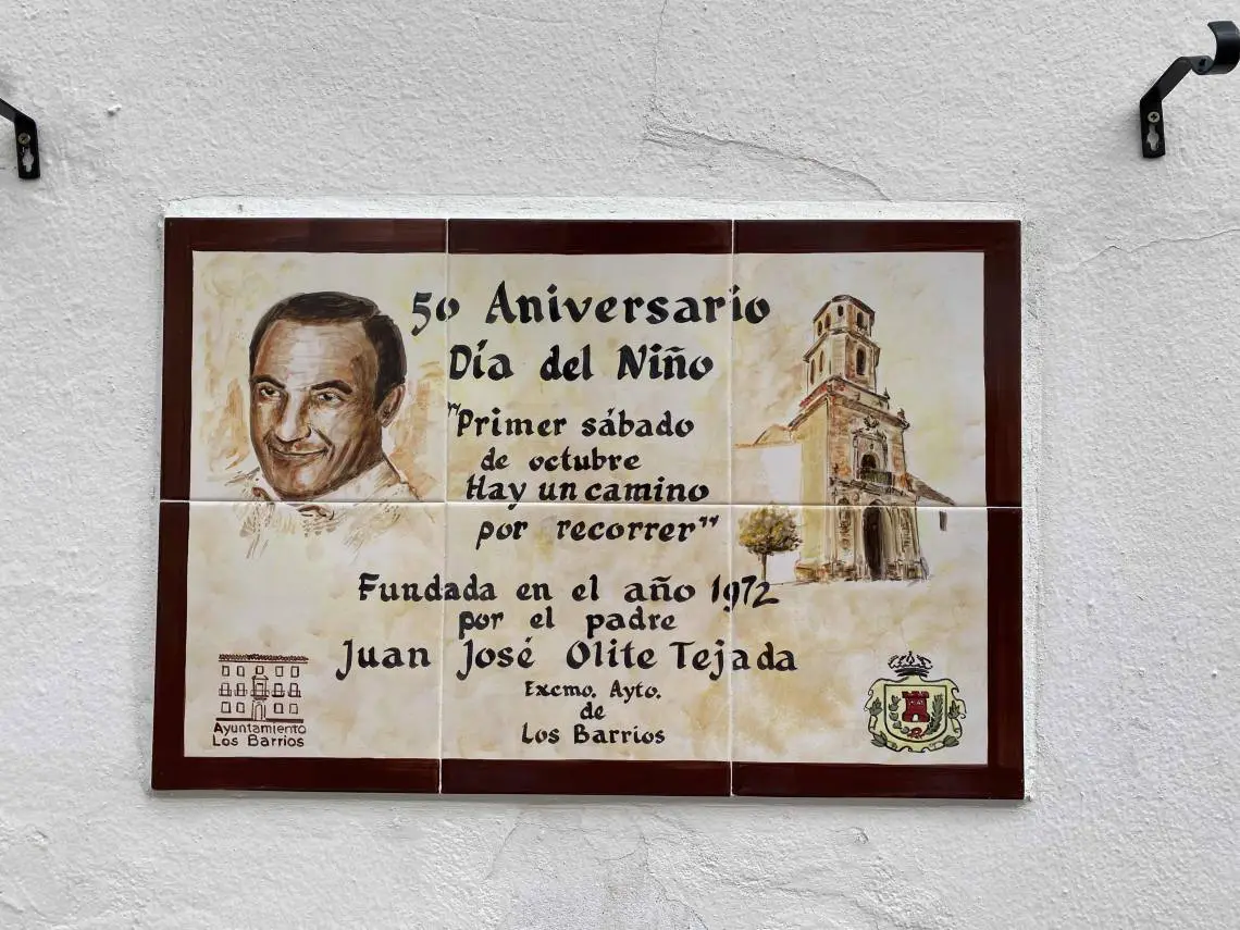 Una placa en el centro de la villa recuerda ya para siempre el 50º aniversario del Día del Niño y al Padre Juan José Olite