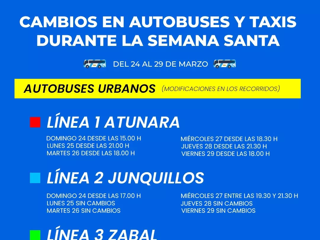 Las líneas de autobuses y los servicios de taxis sufrirán modificaciones en recorridos y paradas desde el próximo Domingo de Ramos