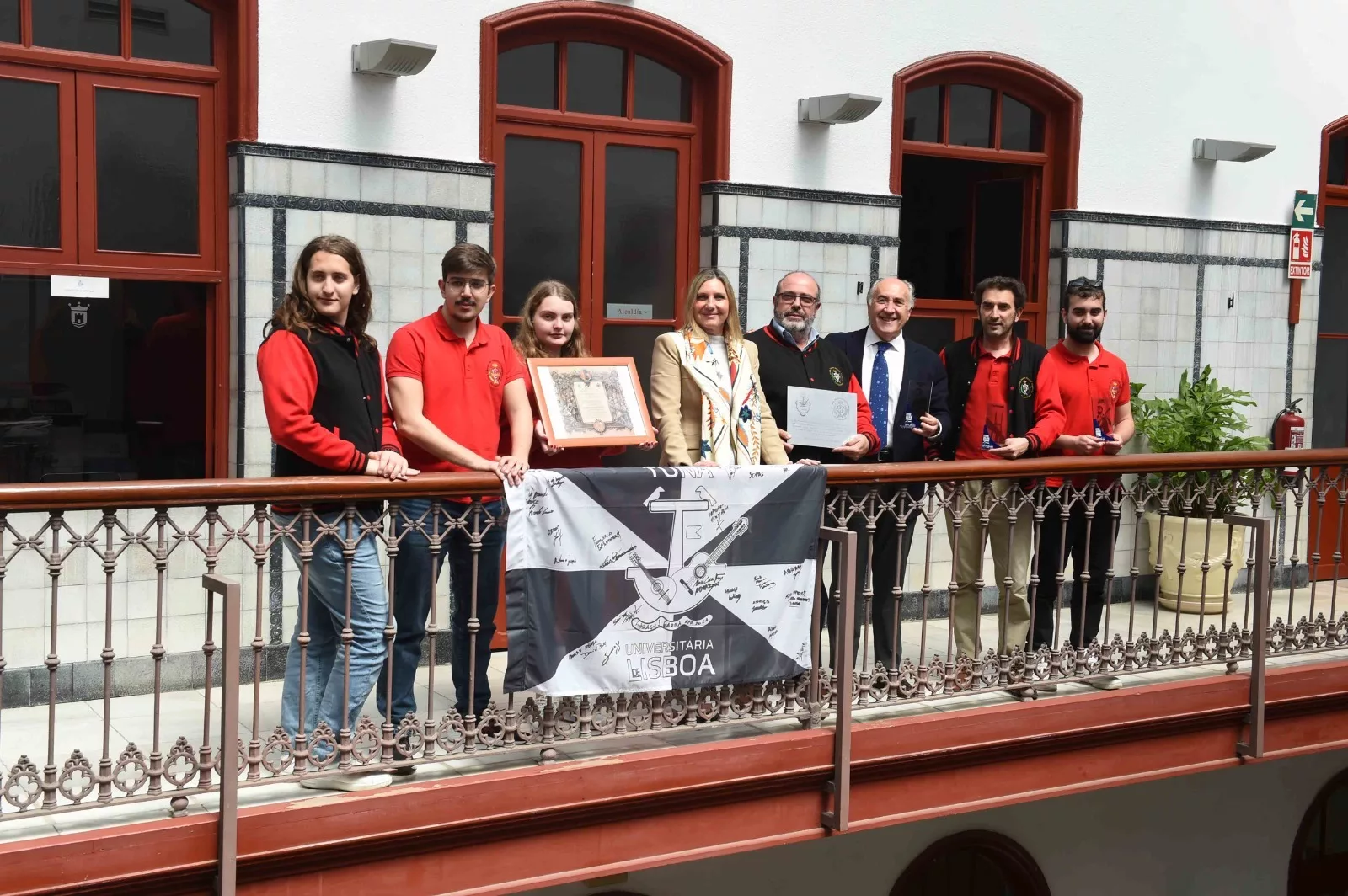 La Tuna de Peritos presenta al alcalde los premios obtenidos en el Festival Internacional ‘Alma Tunae’ de Alcochete (Portugal)