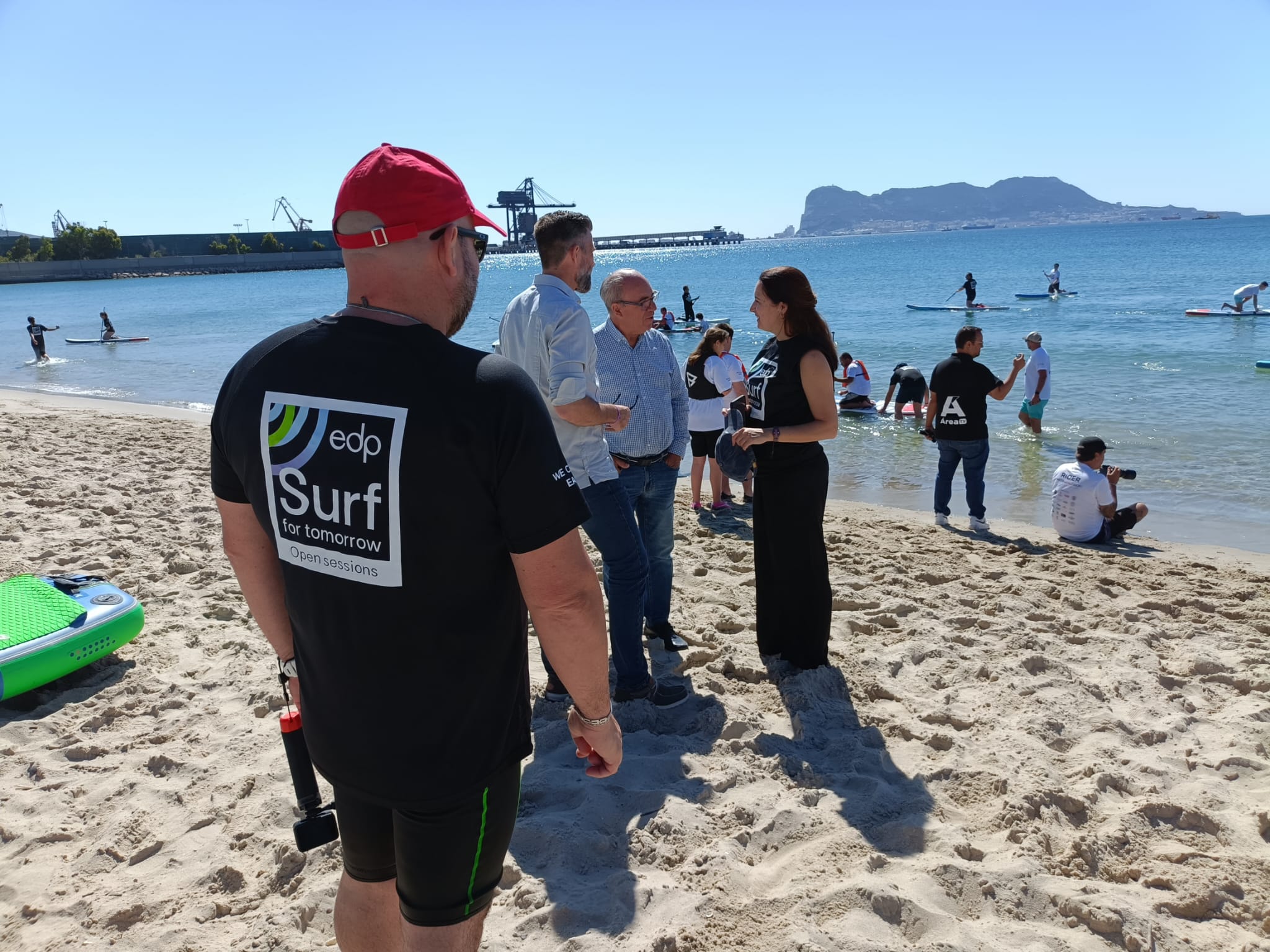 Los Concejales de Palmones y Deportes Asisten a la Campaña «Cuando Surfeamos, Elegimos la Tierra» en la Playa de Palmones.