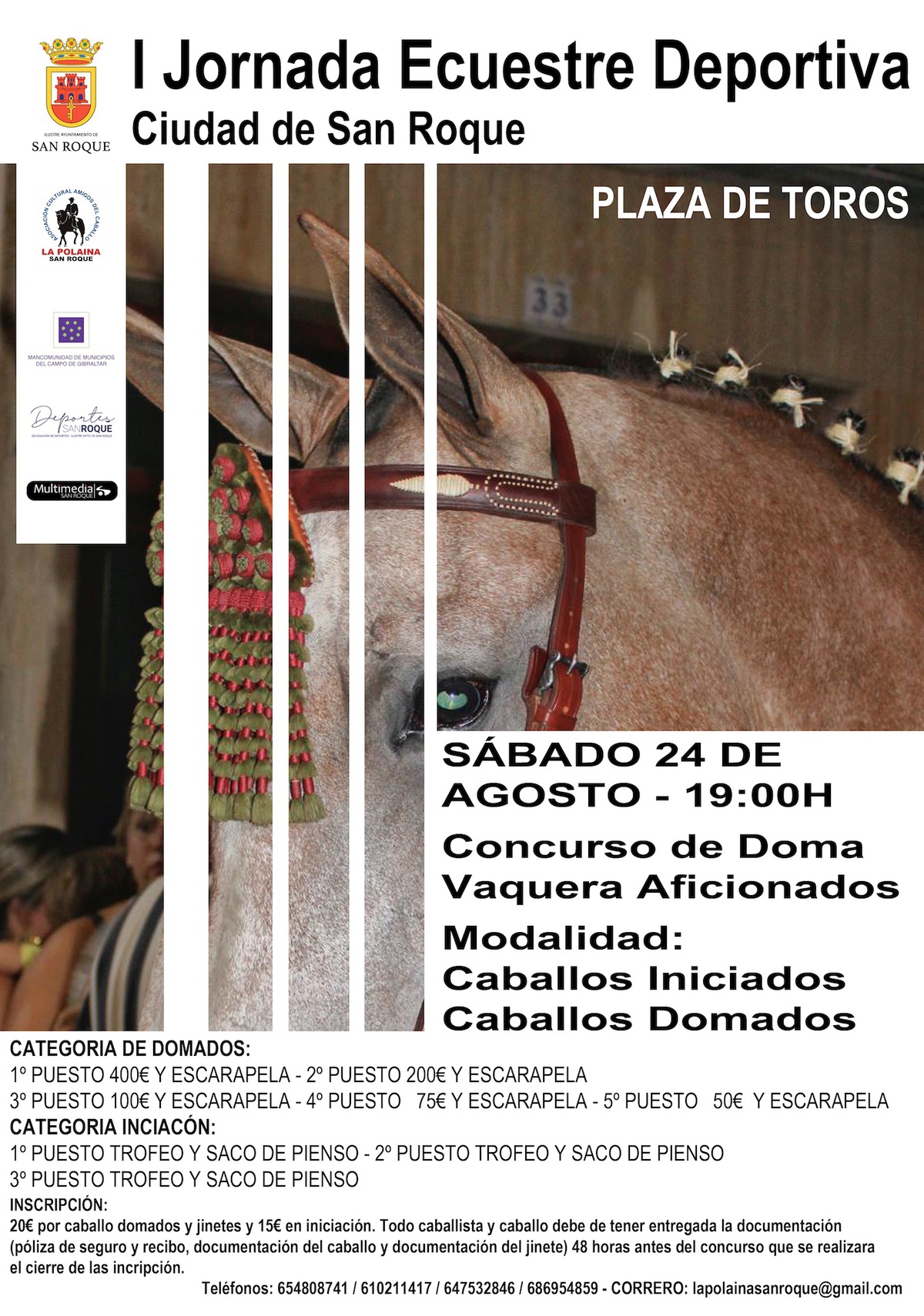 La Plaza de Toros acogerá entre hoy viernes 23 y mañana sábado 24 de agosto la I Jornada Ecuestre Deportiva “Ciudad de San Roque”.