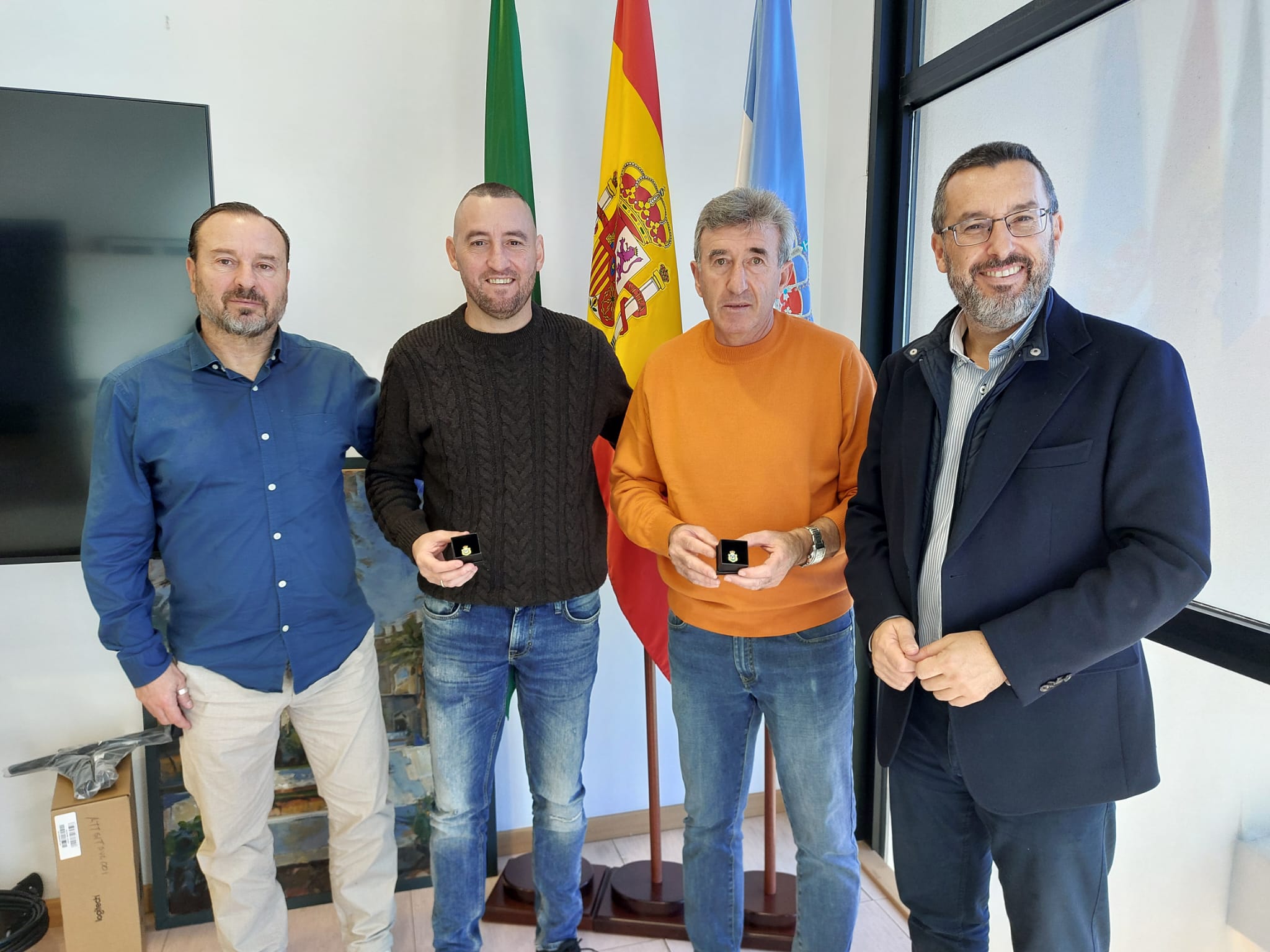 Argimiro Márquez y Copi, los máximos goleadores de la Balona, reciben la insignia de la ciudad de manos del alcalde