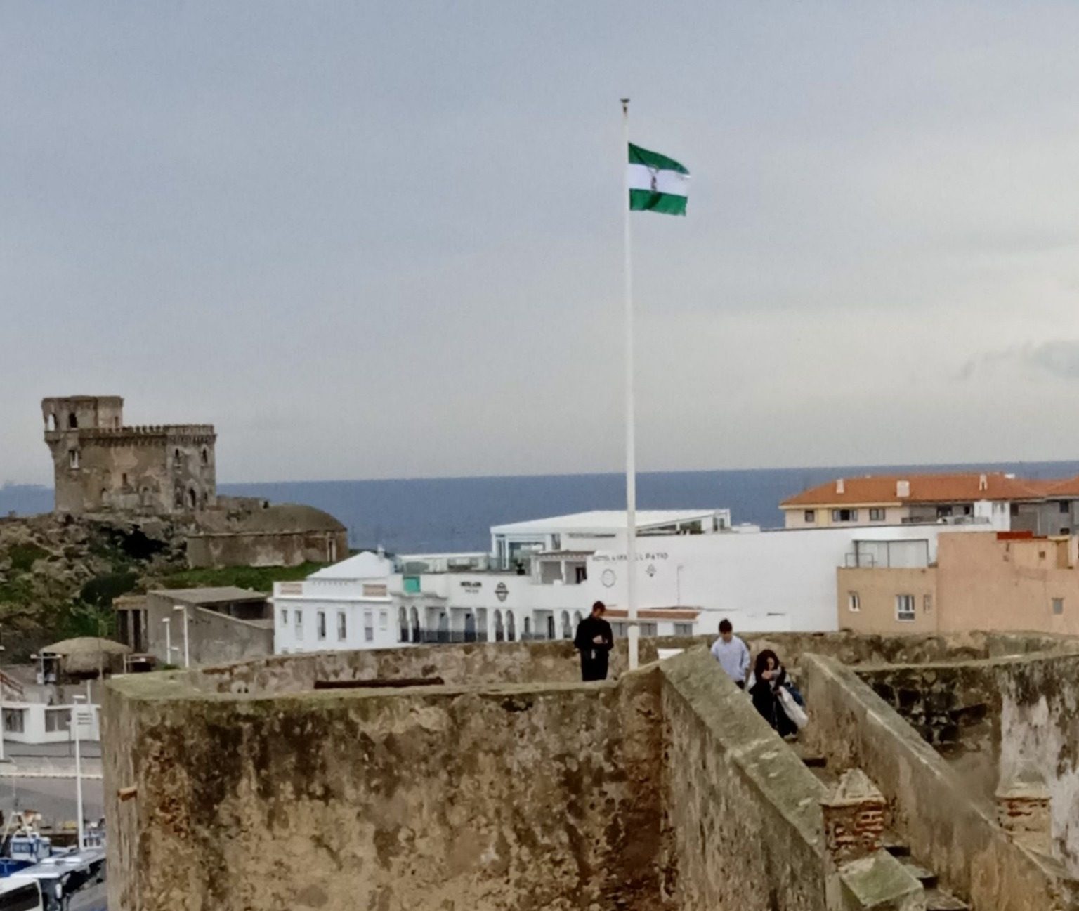 Tarifa celebra el Día de Andalucía bajo la lluvia: el Castillo de Guzmán el Bueno se viste de verde y blanco