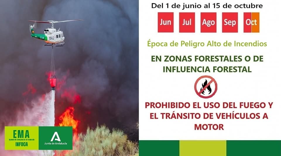 Comienza la época de alto riesgo de incendios forestales en Andalucía: prohibidas las barbacoas y quemas agrícolas