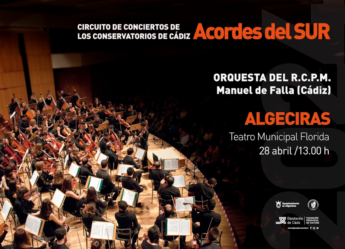El próximo domingo 28 de abril , tendrá lugar el concierto de la orquesta del conservatorio de Cádiz que actuará en el teatro Florida de Algeciras , dentro del circuito de conciertos de los conservatorios de Cádiz «Acordes del Sur».