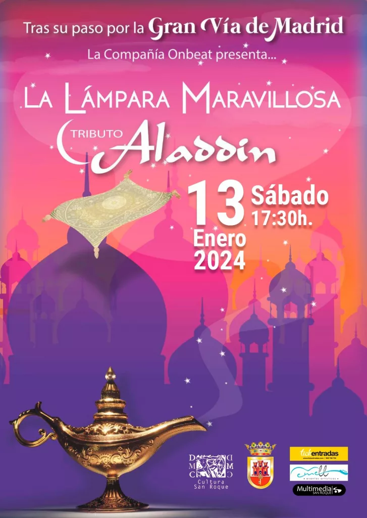 Tras su paso por la Gran Vía de Madrid, llega a San Roque “La Lámpara Maravillosa”, el Tributo gracias a la Compañía Onbeat. A través de la Delegación de Cultura que encabeza Ana Ruiz, el próximo 13 de enero se podrá disfrutar de ello en el Teatro Juan Luis Galiardo, a las 17:30 horas.