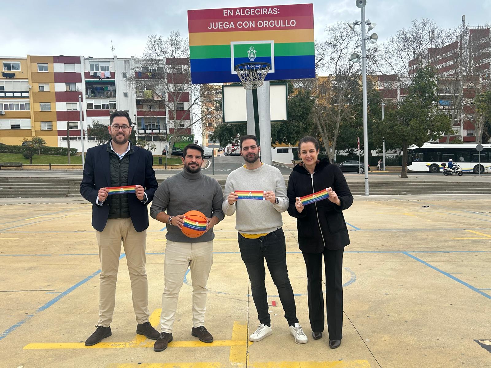 Las canastas del recinto ferial Antonio Quintero de Algeciras han sido decoradas con los colores de la bandera arcoíris para conmemorar el Día Internacional contra la Homofobia en el Deporte, celebrado el 19 de febrero. La iniciativa, bajo el lema «Algeciras juega con orgullo», busca dar visibilidad a la igualdad y la inclusión en el ámbito deportivo.