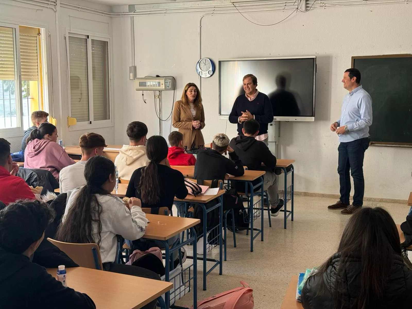 Allí, el teniente de alcalde delegado de Educación, Javier Vázquez, y la secretaria general de la entidad empresarial, Pilar Cañete, acompañados por el jefe de estudios del centro, Gustavo Hernández, han mantenido un encuentro con los alumnos de 4º de ESO, a los que se ha explicado la realidad industrial y portuaria de la zona.