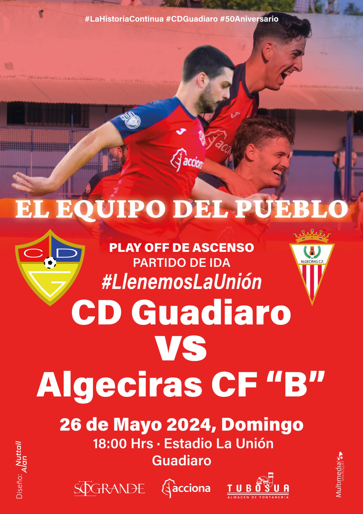 El CD Guadiaro juega el domingo 26 de mayo el partido de ida de la liguilla de ascenso a División de Honor, ante el Algeciras B, en un encuentro que dará comienzo a las 18 horas en el Campo La Unión.