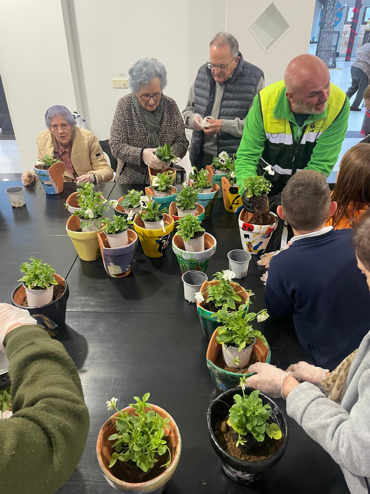 Las instalaciones de Asansull, ubicadas en la calle Carboneros, acogieron ayer un taller de jardinería junto a alumnos de Reiniciarte, para preparar las macetas del proyecto “Te Regalo Una Vida”.