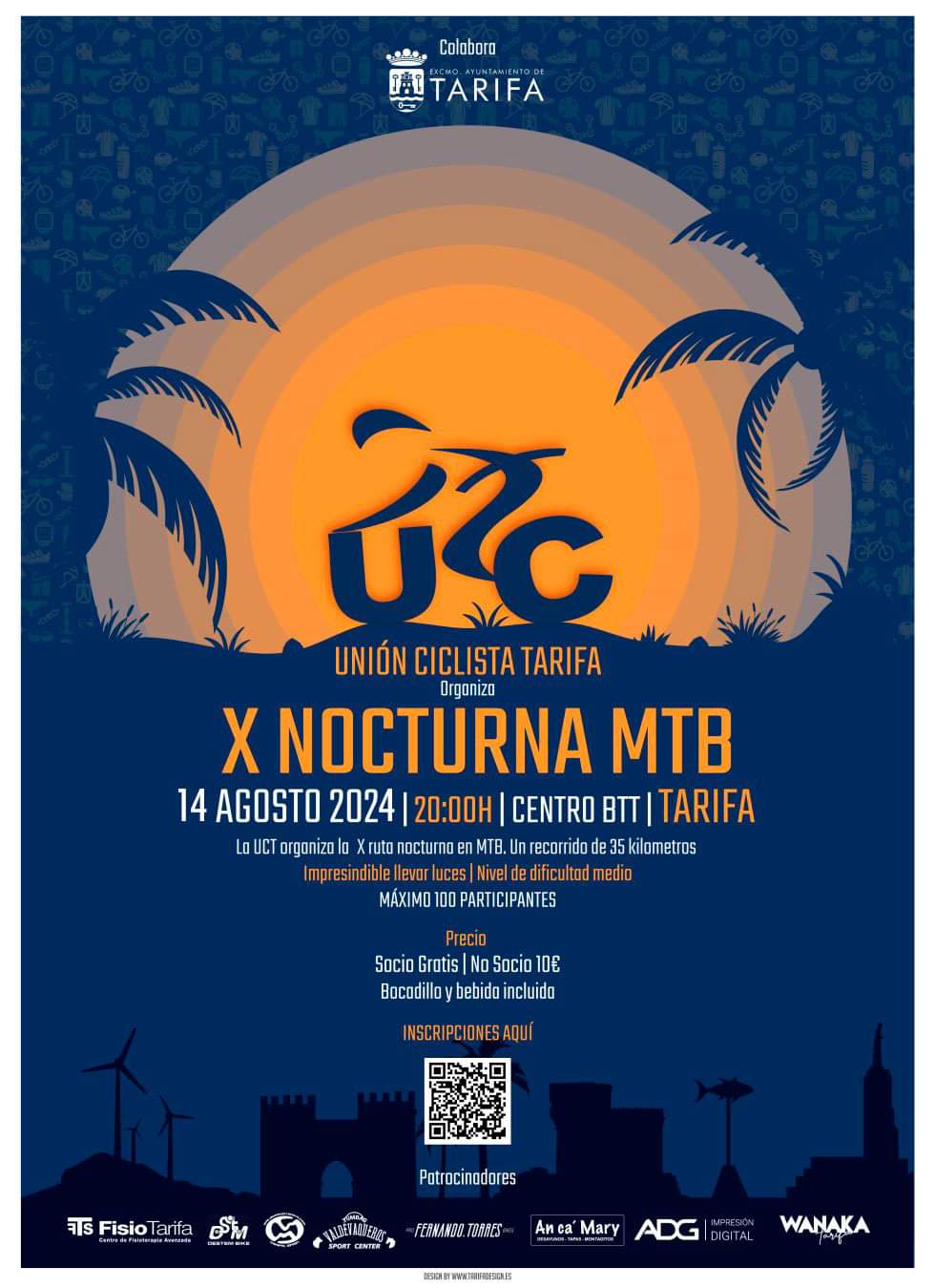 La décima edición de la “Nocturna MTB” comenzará desde el centro BTT de Tarifa, a partir de las ocho de la tarde, y se extenderá a lo largo de 35 kilómetros. Los cerca de 100 inscritos podrán rumbo a la calle de San Sebastián para continuar por Avenida Andalucía, y de ahí enlazar con Batalla del Salado, dirección polígono de la Vega.