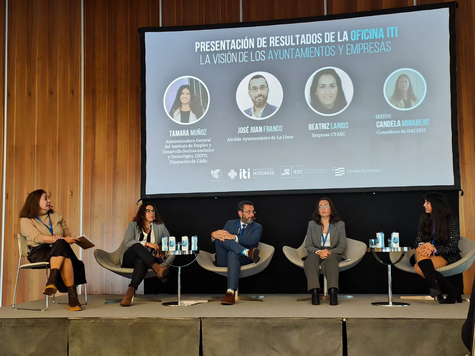 El alcalde de La Línea de la Concepción, Juan Franco, como representante de uno de los municipios favorecidos por los fondos de la Inversión Territorial Integrada ha participado hoy en una mesa redonda en la que se han presentado los resultados de la Oficina ITI de Cádiz, además de la visión de ayuntamientos y empresas beneficiarias de las ayudas del Fondo Europeo de Desarrollo Regional.