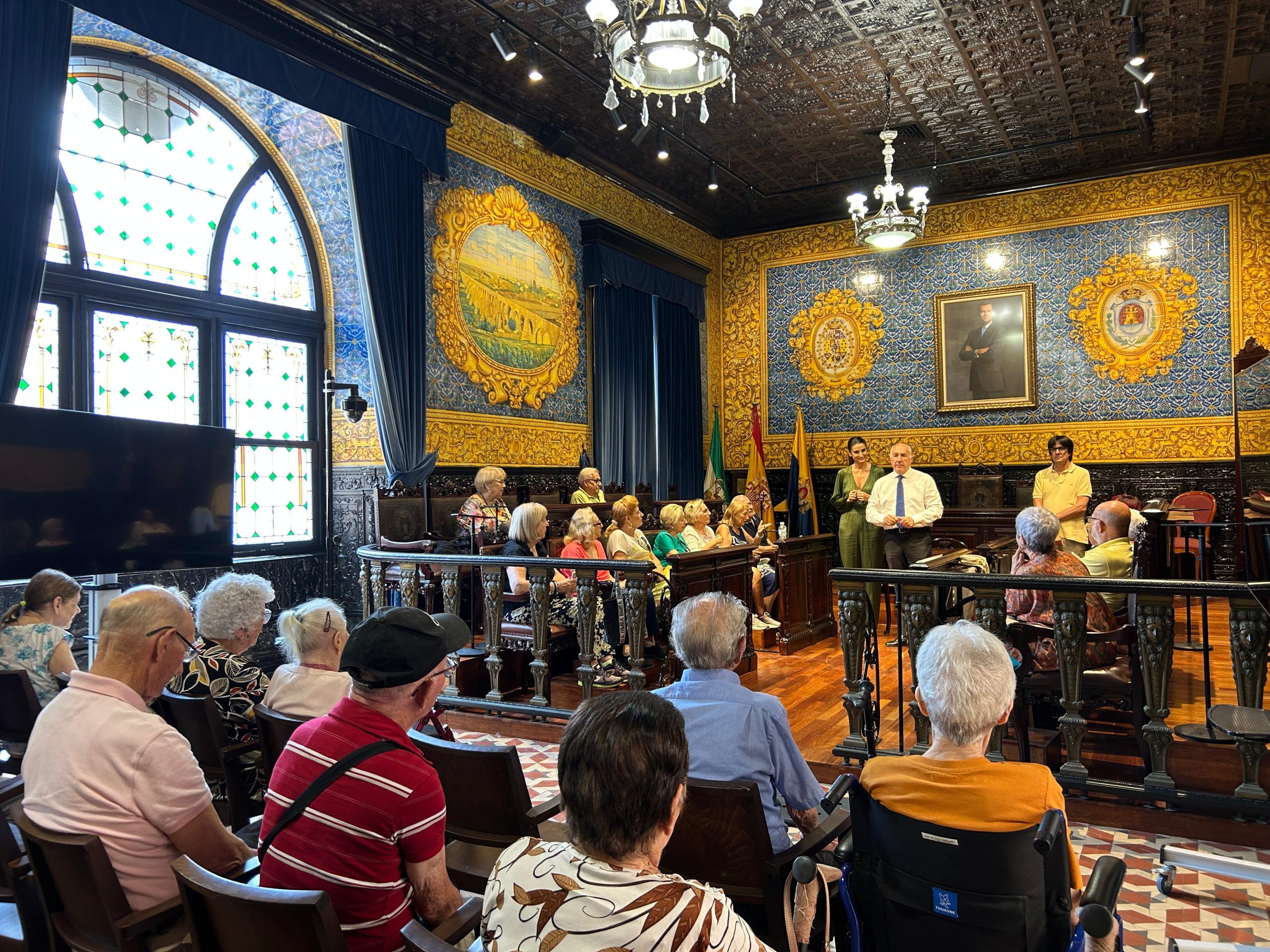 El alcalde, José Ignacio Landaluce, acompañado de la delegado municipal del Mayor, Patricia Bueno, han recibido en el Salón de Plenos a un grupo de mayores y usuarios de la Oferta Municipal de Participación Activa para Mayores (OPAMM).