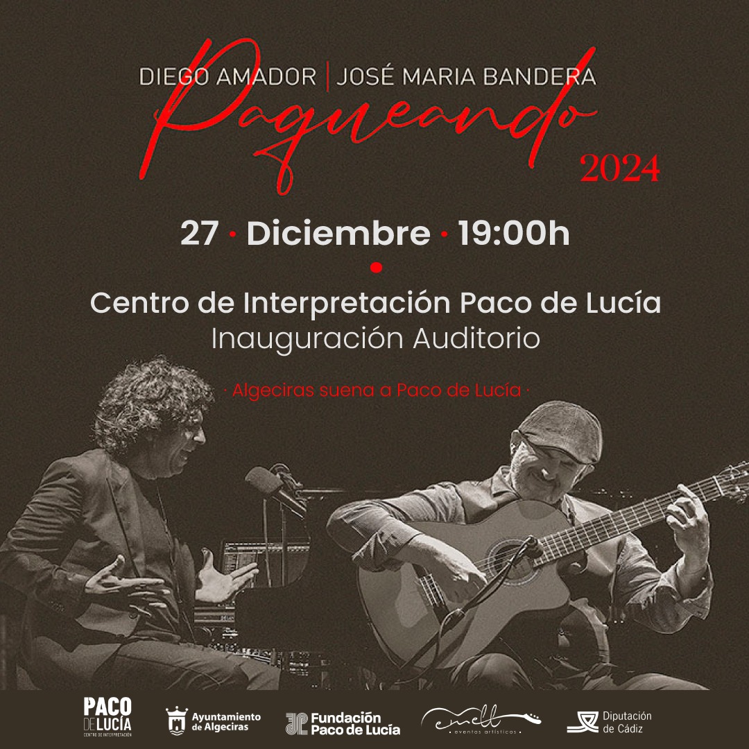 Así, el proyecto ‘Algeciras suena a Paco de Lucía’, organizado por el Ayuntamiento de Algeciras a través de la empresa ‘Emell Eventos’, y la financiación de la Diputación de Cádiz, traerá el concierto ‘Paqueando’ de Diego Amador y José María Bandera para la inauguración del auditorio, el viernes 27 de diciembre a las siete de la tarde, así como el espectáculo ‘La Navidad con Felipa del Moreno’, el lunes 30 de diciembre a las siete de la tarde, en el que la artista estará acompañada de Manuel Valencia a la guitarra, Carlos Merino a la percusión, y a los coros Carmen Fernández, Lola Soto, Antonia Medrano y José Soto.