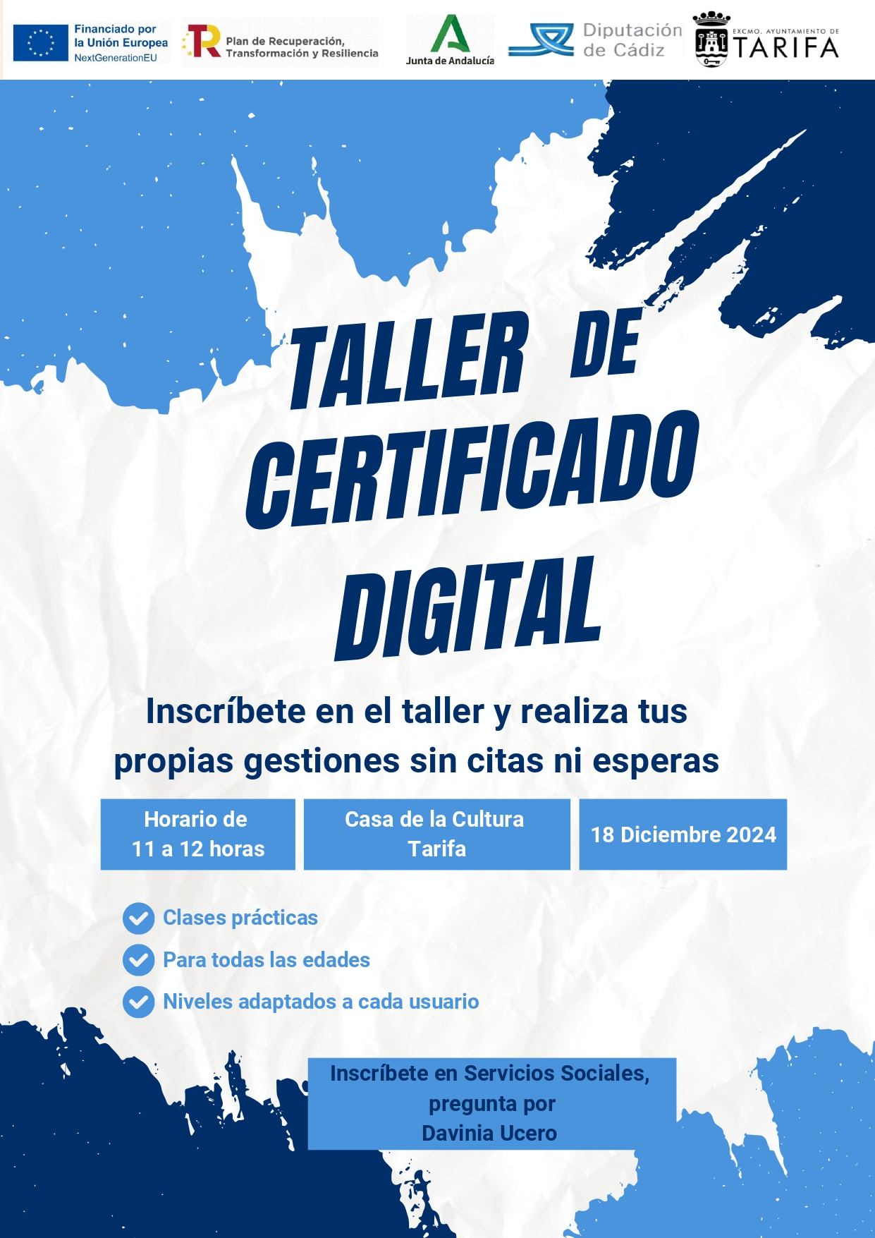 Es el caso también del próximo taller previsto sobre la obtención y uso del certificado digital que ya tiene fecha. Será el próximo 18 de diciembre con sesión abierta a toda la ciudadanía interesada, en la Casa de la Cultura.