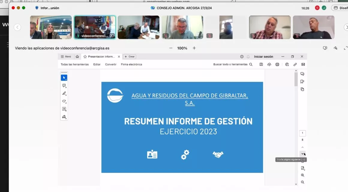 El Consejo de Administración de la Sociedad “Agua y Residuos del Campo de Gibraltar, S.A.U.” (ARCGISA) ha aprobado las cuentas anuales correspondientes al ejercicio 2023 de la empresa pública, junto al correspondiente informe de gestión y su memoria de sostenibilidad.