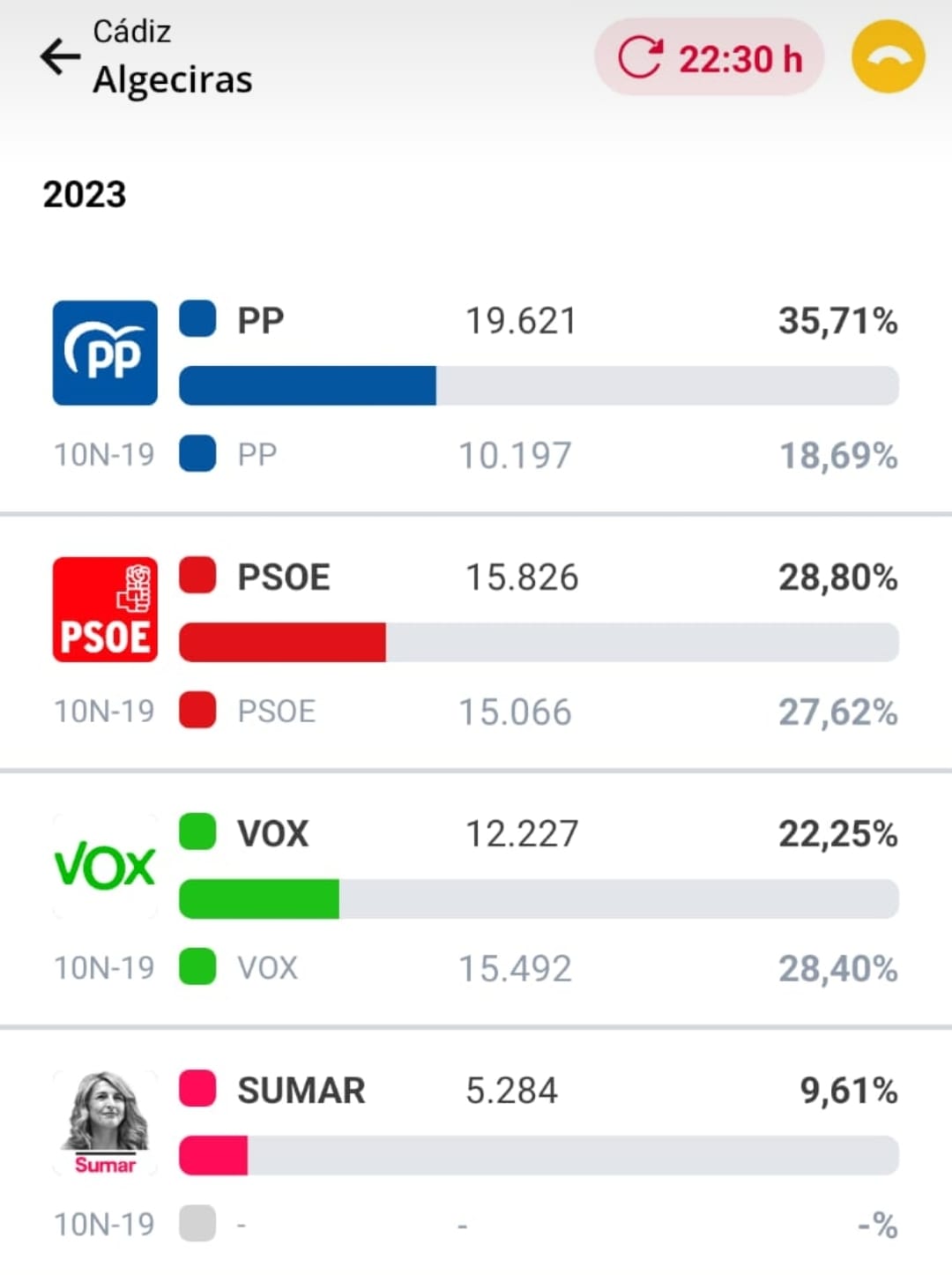 VOX Algeciras : 12.227 votos 22,25%