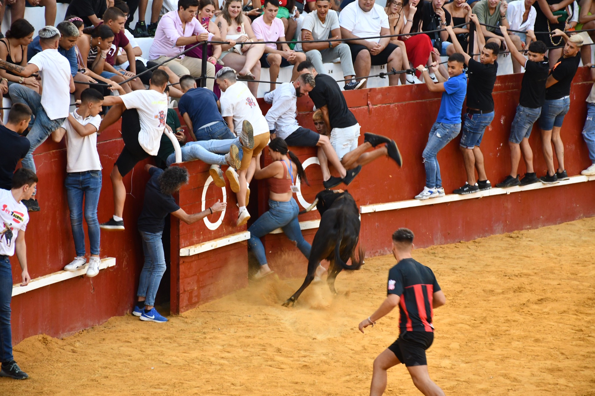 Sólo algunos revolcones y ningún herido es el balance del Toro del Aguardiente 2024. Asistieron miles de personas en el graderío, mientras que decenas se atrevieron a pisar la arena, muchos de ellos tras haber corrido a “Cartucho” desde la Barriada de la Paz. Hubo varios revolcones causados tanto por el toro como por las vaquillas, e incluso alguna voltereta, pero los golpes fueron leves y solo algunos de los mozos afectados se acercaron a los servicios médicos para someterse a pequeñas curas.