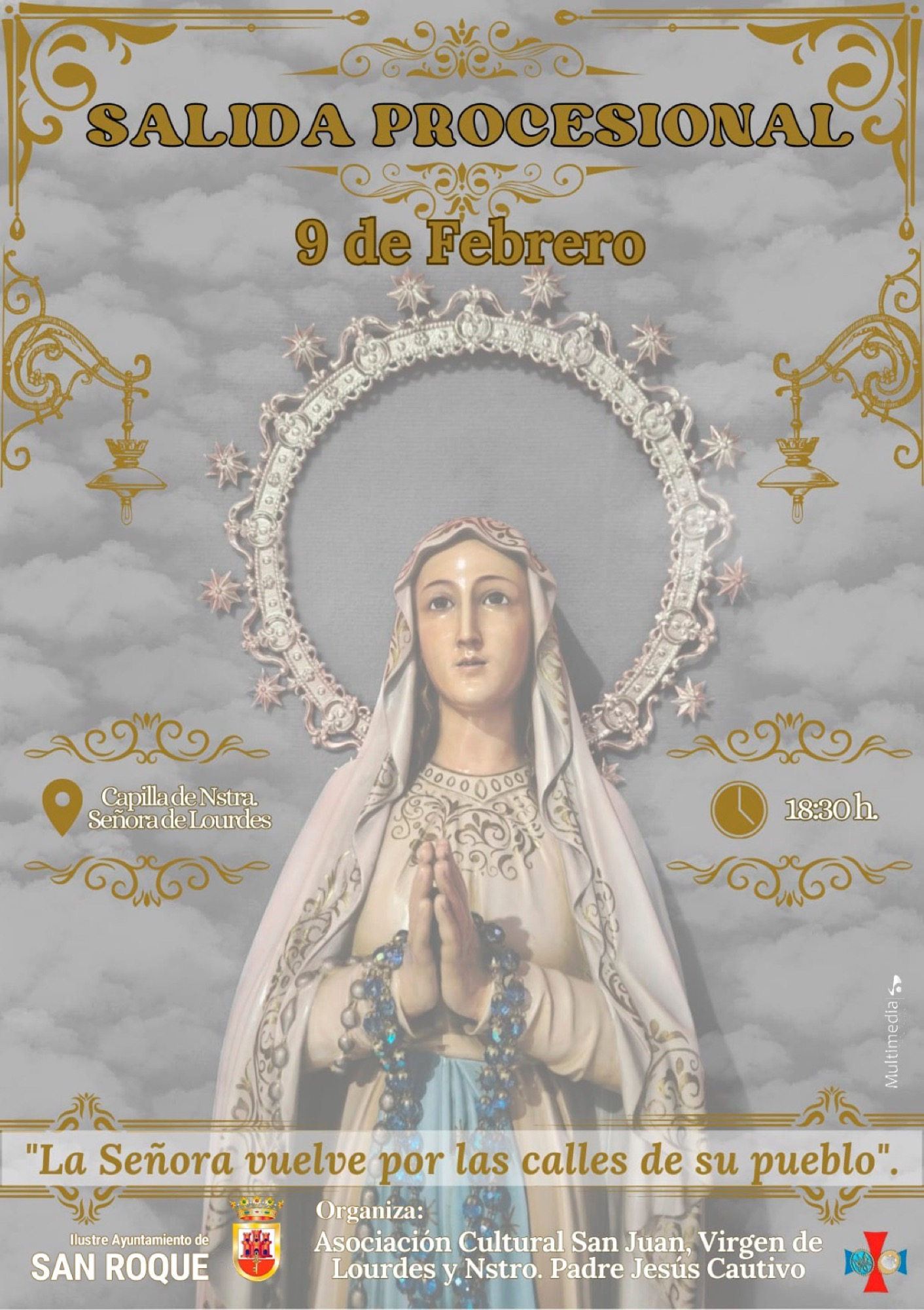 Aunque la Festividad de Nuestra Señora de Lourdes tendrá lugar el próximo martes 11 de febrero, este domingo, día 9, se celebrará en las calles de Taraguilla la tradicional procesión organizada por a Asociación Parroquial de Nuestra Señora de Lourdes, San Juan y Nuestro Padre Jesús Cautivo con la colaboración del Ayuntamiento de San Roque. Esta actividad tendrá lugar a partir de las 18.30 horas.