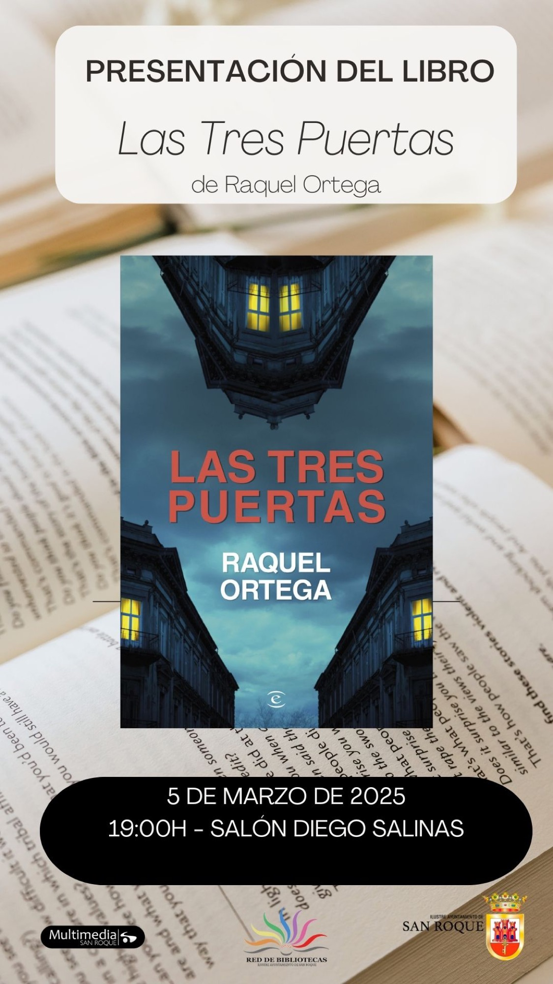 La Delegación de Bibliotecas, que dirige la concejal Rocío Fernández, organiza la presentación del libro “Las tres puertas”, un “thriller” psicológico escrito por la joven madrileña Raquel Ortega. El acto tendrá lugar en el salón de actos del Edificio Diego Salinas este miércoles, 5 de marzo, a partir de las 19.00 horas.