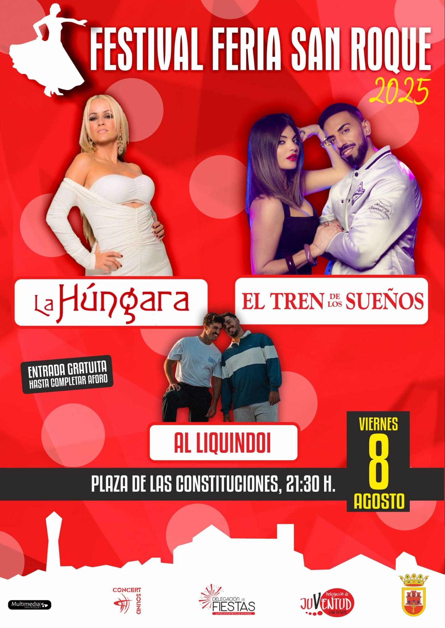 La Húngara, El Tren de los Sueños y Al Liquindoi actuarán el viernes 8 de agosto en la Plaza de las Constituciones como último de los festivales de música en el municipio previos a la Feria Real de San Roque. Organiza la delegaciones de Fiestas y Juventud del Ayuntamiento de San Roque y la entrada será libre.
