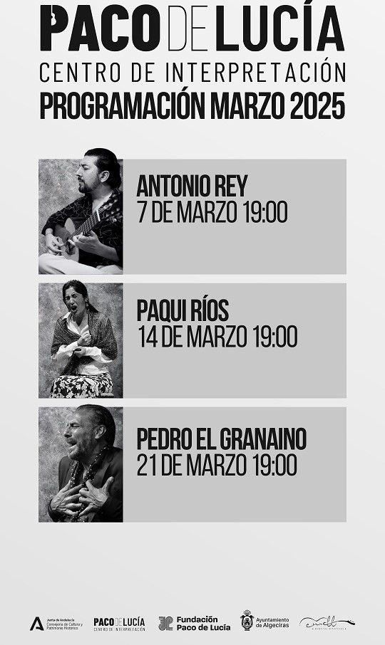 El Centro de Interpretación “Paco de Lucía” se convertirá en el epicentro del flamenco durante el próximo mes de marzo, con las actuaciones de tres grandes referentes del género: Antonio Rey, Paqui Ríos y Pedro el Granaino. Según ha informado la teniente de alcalde delegada de Cultura y Patrimonio Histórico, Pilar Pintor, estos espectáculos se desarrollarán en el auditorio “La casa de Paco”, dentro de la programación impulsada por la Delegación de Cultura del Ayuntamiento de Algeciras y la empresa Emell Eventos, dirigida por José Luis Lara.