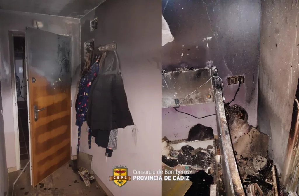 Bomberos del Consorcio de Bomberos de la provincia de Cádiz del Parque de La Línea han intervenido en un incendio de una vivienda en la urbanización Vista Hermosa. La planta baja ha quedado con cuantiosos daños materiales, afectando a prácticamente todas las estancias de la casa.