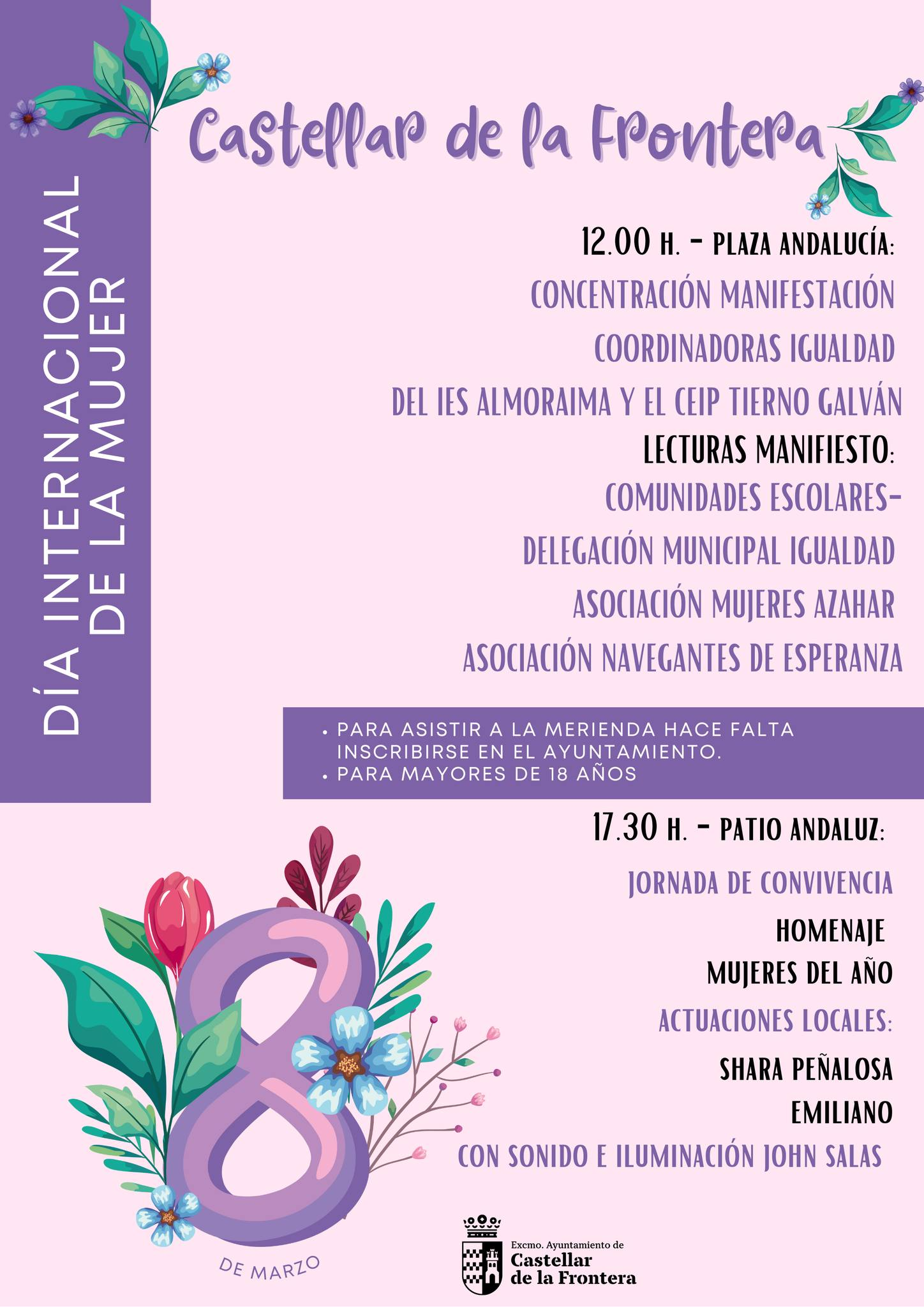 El Ayuntamiento de Castellar de la Frontera presenta los actos conmemorativos del Día de la Mujer 2025, que serán el viernes 7 de marzo con una jornada de actividades que pone en valor el papel de la mujer en nuestra sociedad.