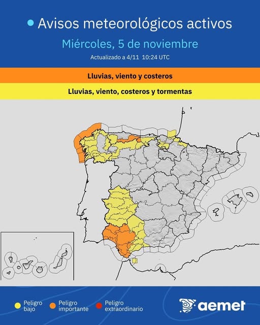 La AEMET mantiene activa la vigilancia meteorológica en toda la provincia y actualizará los avisos en función de la evolución del temporal. Se recomienda a la población seguir los canales oficiales y atender las indicaciones de los servicios de emergencia.