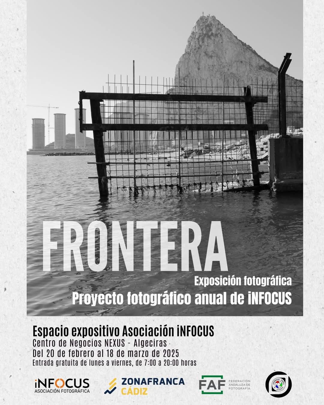 La Asociación Fotográfica iNFOCUS presenta su nueva exposición colectiva, titulada «Frontera», un proyecto en el que trece fotógrafos han plasmado su visión sobre la frontera entre España y Gibraltar.