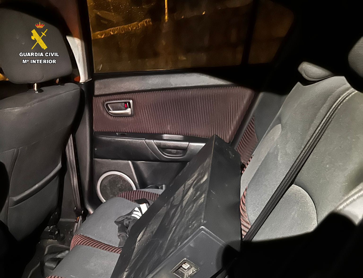 Rápidamente se desplazaron las patrullas de servicio de la Guardia Civil a la zona, encontrándose con un sospechoso que emprendió la huida en su vehículo al detectar la presencia de los agentes.