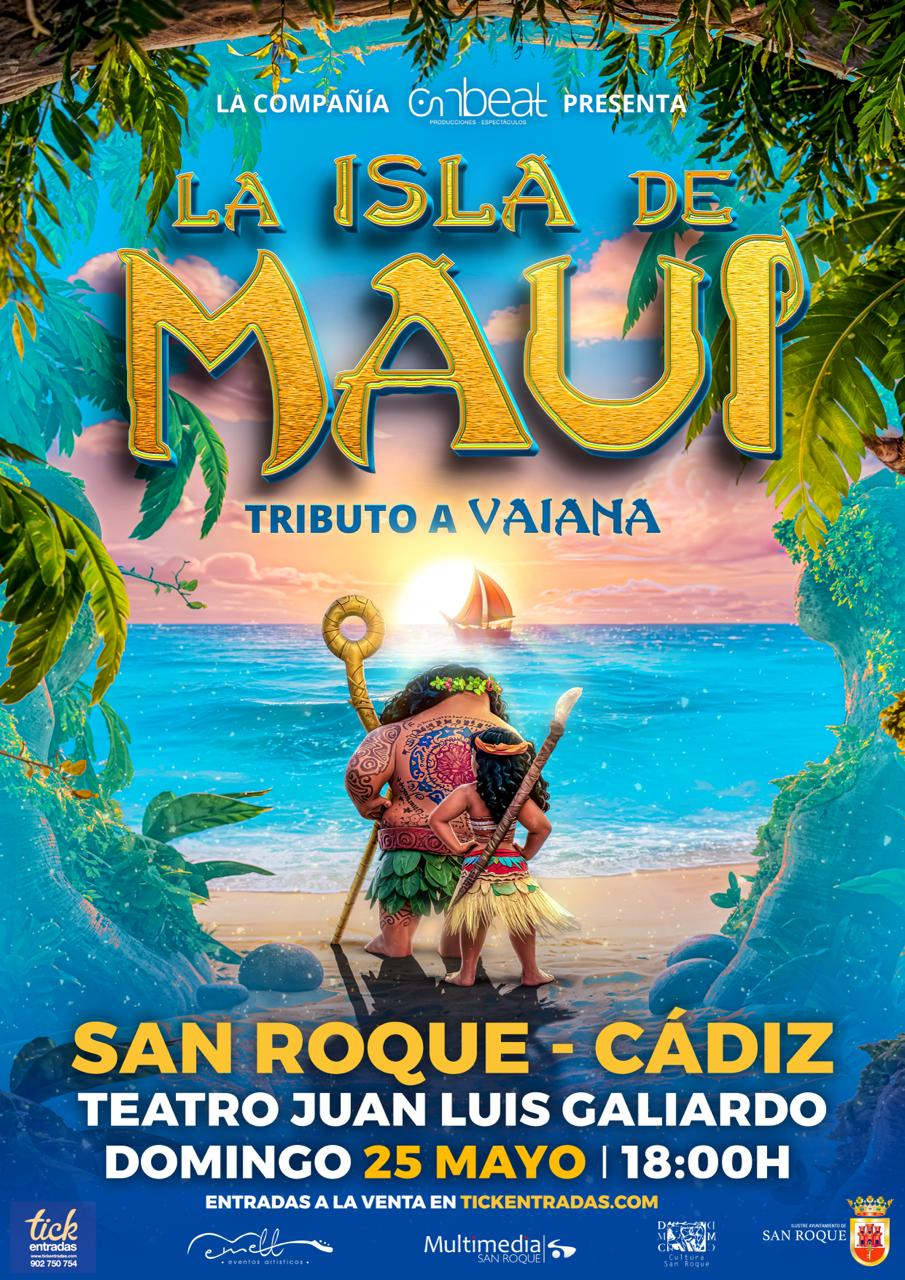 La delegación de Cultura del Ayuntamiento de San Roque organiza para el 25 de mayo en el Teatro “Juan Luis Galiardo” el espectáculo musical infantil “La isla de Maui”.