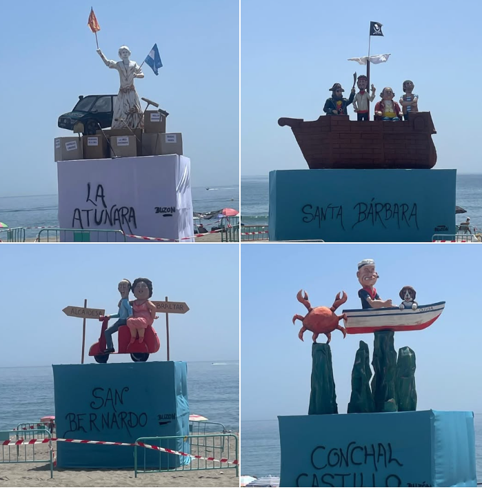 Además de esta figura conmemorativa, la noche contará con la quema de otras tres hogueras en diferentes puntos del litoral. En San Bernardo, Juanito y Juana, personajes motorizados entre Gibraltar y la Alcaidesa, serán protagonistas; en Santa Bárbara, se quemará un barco pirata, y a Popeye el marino, en Conchal-Castillo. Todas ellas disponen de buzones donde los asistentes podrán depositar deseos escritos, que serán consumidos por el fuego en un acto de purificación para alejar lo negativo y atraer la buena suerte.