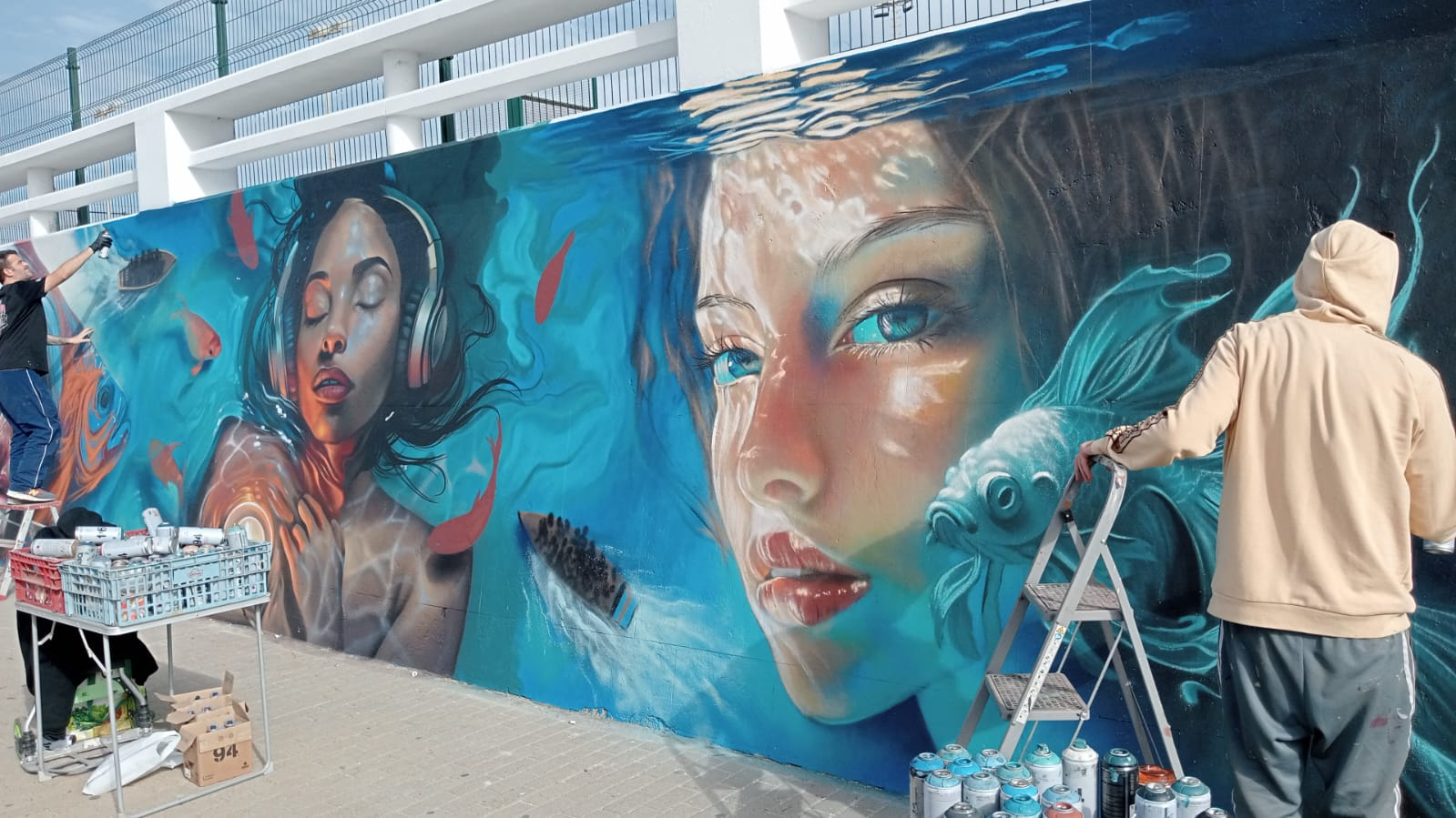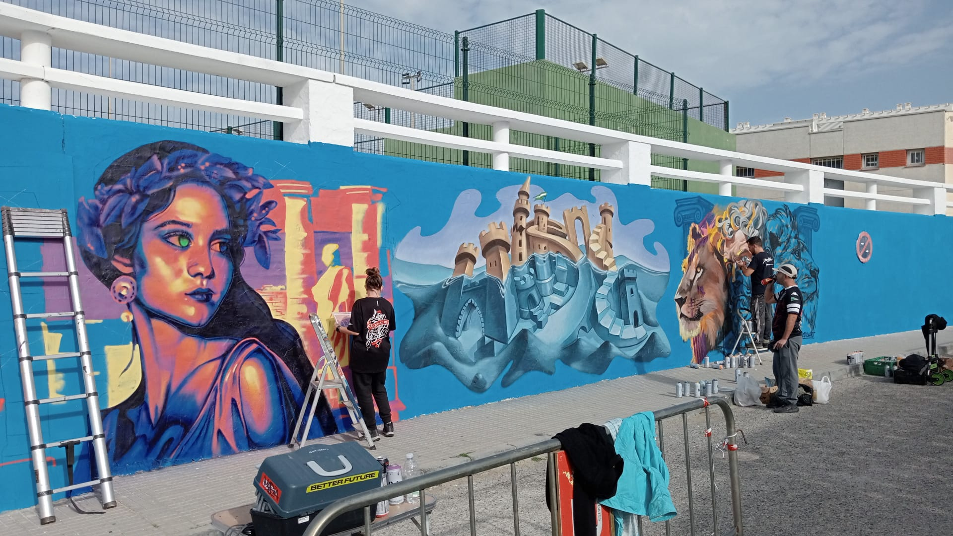 Y, mientras, en el parque feria los artistas siguen con sus murales en graffiti. Toda una creación singular que dejará en la ciudad una bella huella.