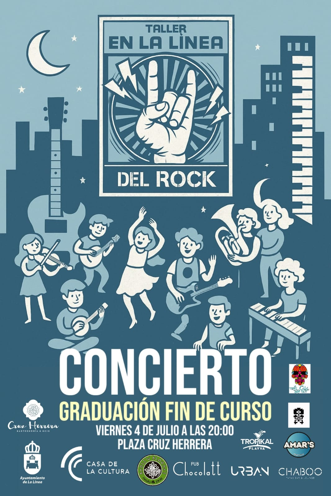 El viernes, 4 de julio, a las 20.00 horas, se celebrará en la Plaza Cruz Herrera el segundo concierto de graduación de fin de curso del taller “En La Línea del Rock”, con la colaboración de la delegación municipal de Cultura, que dirige la concejal Raquel Ñeco, la Casa de la Cultura y la Galería Manolo Alés, además de establecimientos del entorno.