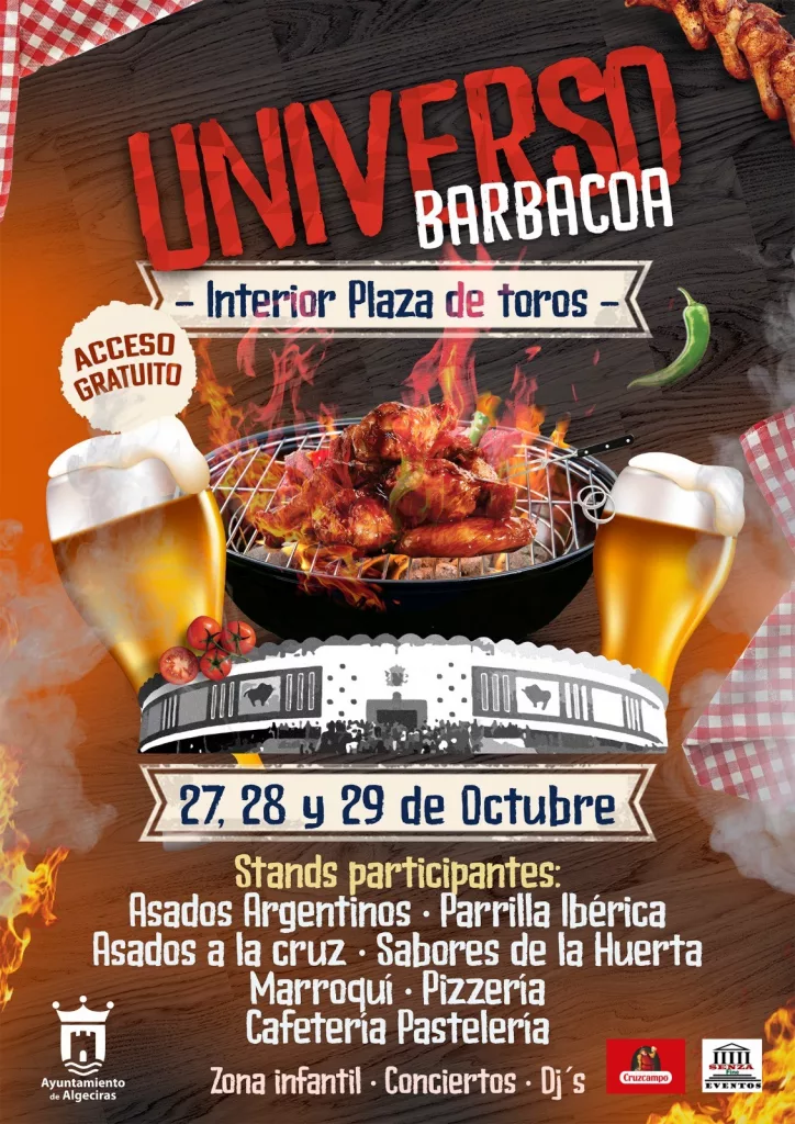 La plaza de toros “Las palomas” será escenario desde el viernes al domingo de esta semana del evento “Universo Barbacoa”, un encuentro gastronómico acompañado de actuaciones y conciertos que organizan Senza Eventos y Cruzcampo con la colaboración del Ayuntamiento de Algeciras, según ha informado la teniente de alcalde delegada de Feria y Fiestas, Juana Cid.