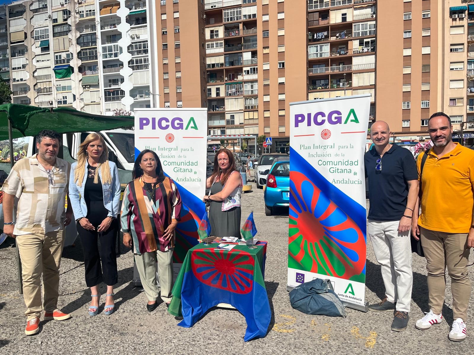 La vicepresidenta de la Mancomunidad de Municipios del Campo de Gibraltar, María Teresa García León, ha acudido en el día de hoy al mercadillo municipal de Algeciras para presentar el actual programa Plan Integral para la Inclusión de la Comunidad Gitana de Andalucía (PICGA), cuya ejecución es realizada por el área de Formación y Empleo de la Institución comarcal.
