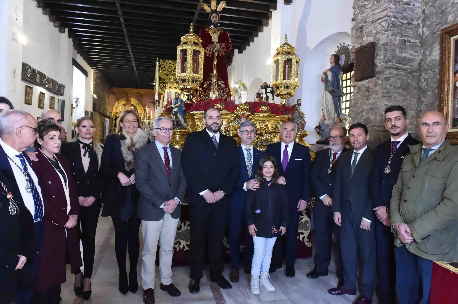 En el acto, que se ha celebrado en la Capilla de San Isidro, han estado presentes el director espiritual de la Venerable Cofradía de Penitencia de Nuestro Padre Jesús Cautivo (Medinaceli) y María Santísima de la Esperanza, reverendo pafre Francisco Cánovas Rodríguez; su hermano mayor, Raúl de la Palma Ocaña Pacheco; el presidente del Consejo Local de Hermandades y Cofradías, Manuel Delgado Cerro; así como los tenientes de alcalde Jacinto Muñoz Madrid y María Solanes, además de los concejales delegados Ángel Martínez, Patricia Bueno, Sabina Quiles y Álvaro Márquez, junto al subdelegado del Gobierno de la Junta de Andalucía en el Campo de Gibraltar, Francisco Javier Rodríguez Ros.