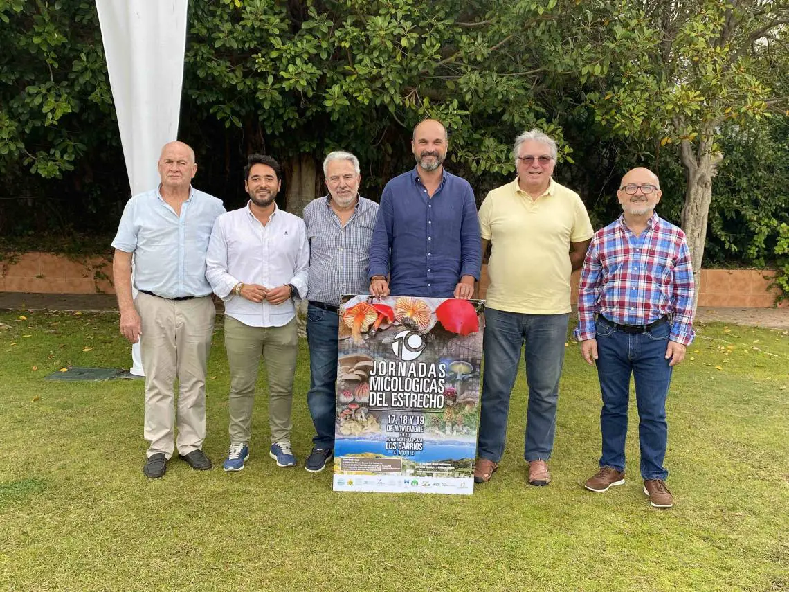 El alcalde de Los Barrios, Miguel Alconchel, el delegado de Medio Ambiente, Antonio Dávila, y el presidente de la Asociación Micológica del Estrecho ‘Mairei’, Juan Antonio Valle Viana, han presentado hoy el cartel de la décima edición de las Jornadas Micológicas del Estrecho, que organiza el citado colectivo, con la colaboración del Ayuntamiento, entre otras entidades, y que se celebrarán en el hotel Montera de la localidad los días 17, 18 y 19 del próximo mes de noviembre.