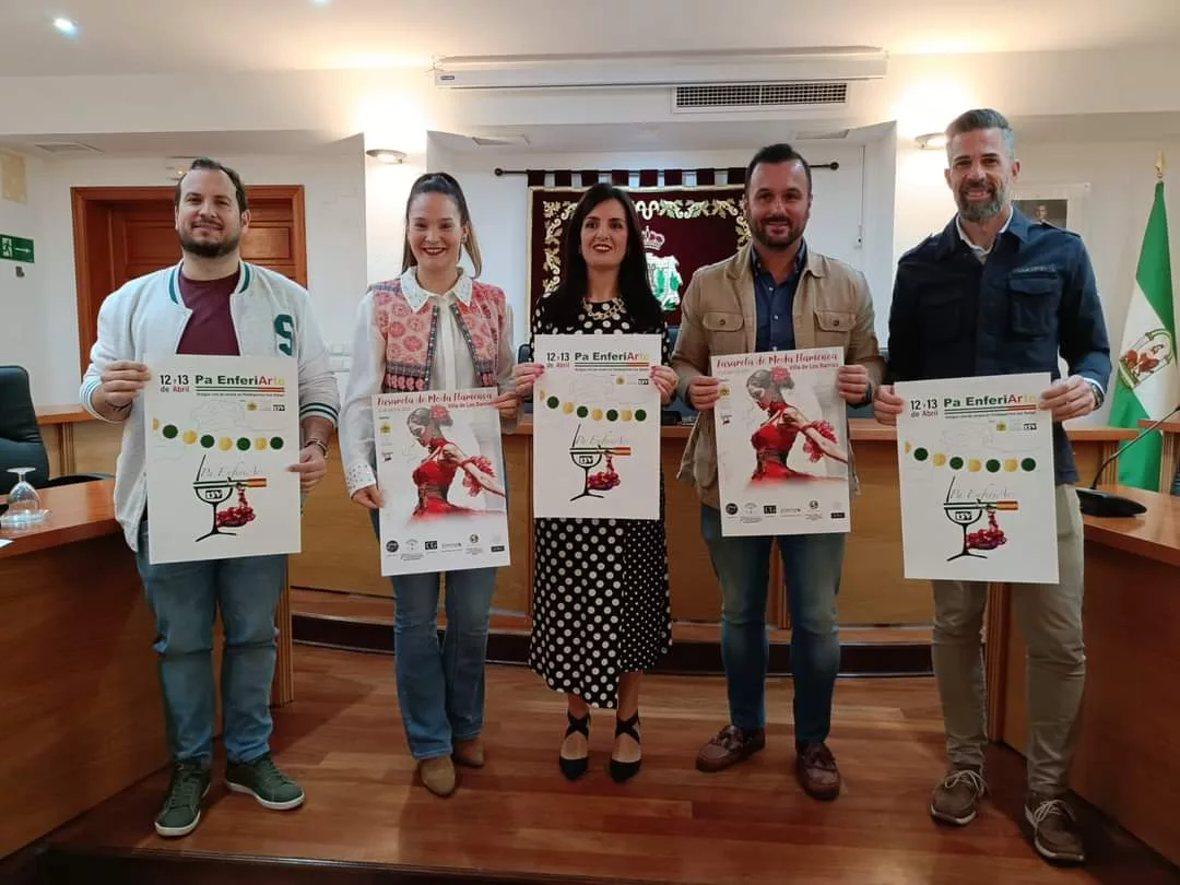 La primera teniente de alcalde, Sara Lobato, ha presentado este mediodía junto a la presidenta la presidenta de la Peña 15-V, Miriam Berbén, y acompañada del delegado de Festejos, Daniel Pérez Cumbre; y del concejal de Deportes, Raúl Álvarez; la primera edición del evento ‘Pa Enferiarte’ y una pasarela de moda flamenca, que se celebrará en Los Barrios los días 12 y 13 de abril, en las instalaciones del antiguo cine de verano.