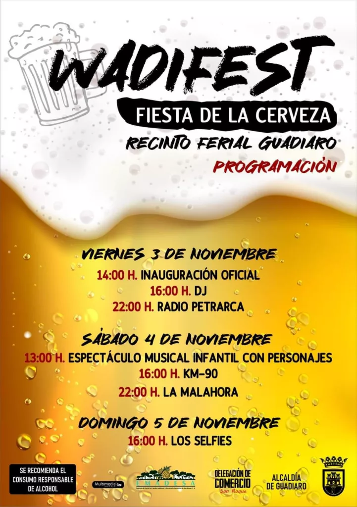 Por segundo año consecutivo, Guadiaro acogerá Wadifest, la Fiesta de la Cerveza, que desde mañana viernes y hasta el domingo se celebrará en una carpa instalada en el Recinto Ferial de la barriada y donde se prevén actuaciones durante todo el fin de semana.