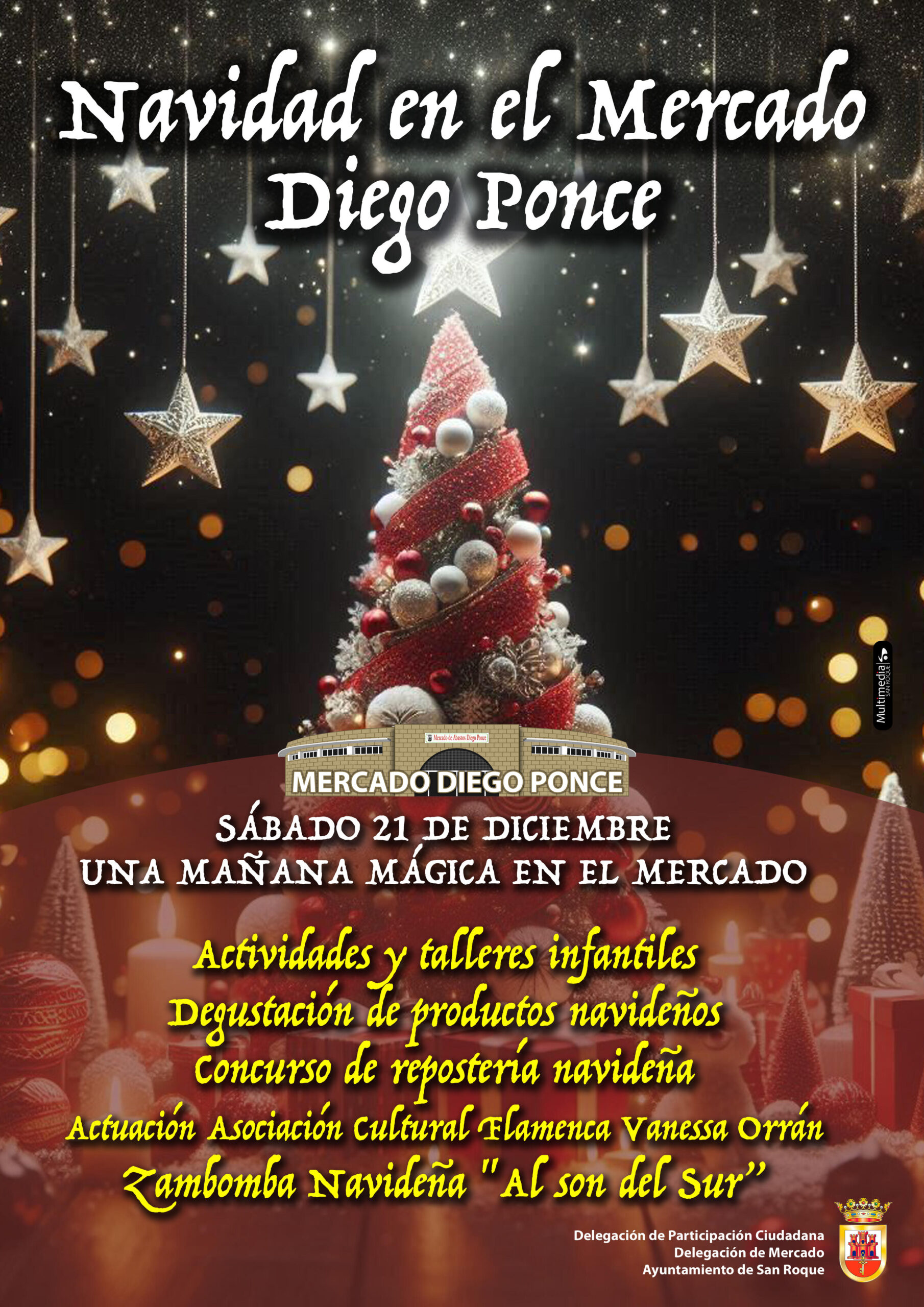 El Mercado Municipal Diego Ponce, en San Roque Ciudad, será ese día escenario de varias actividades con el fin de darle mayor presencia a este emplazamiento comercial durante estas fechas navideñas. Se trata de una iniciativa de las delegaciones de Mercado del Ayuntamiento de San Roque, que coordina el teniente de alcalde David Ramos y Participación Ciudadana, que preside la edil, Rocío Fernández.