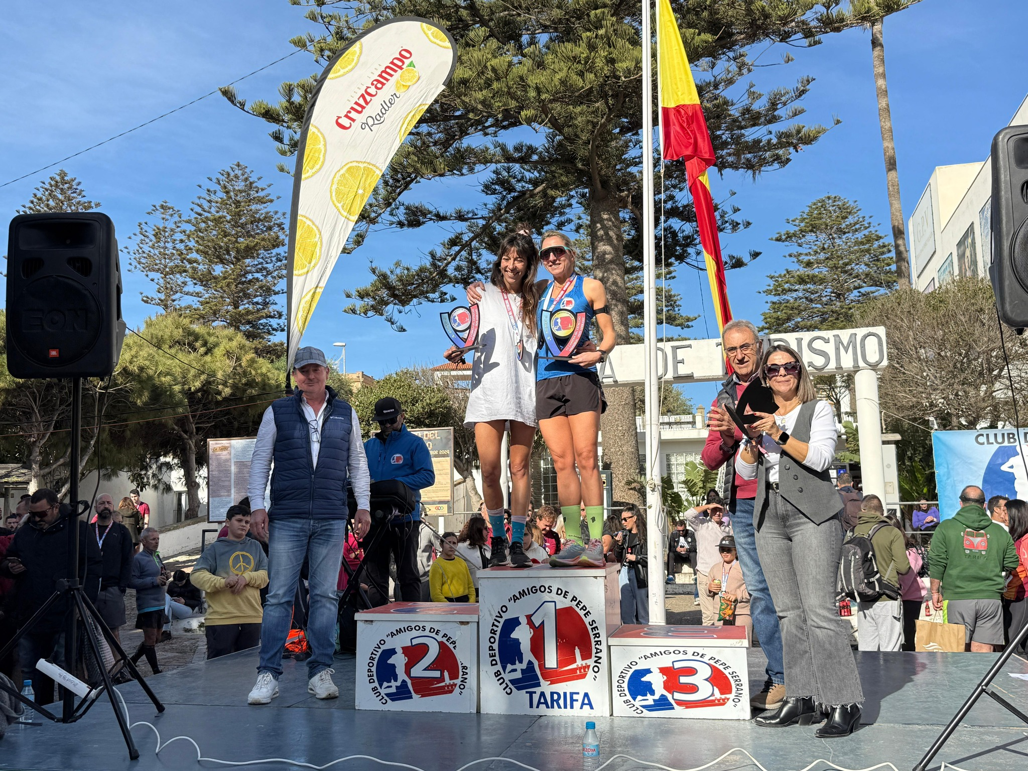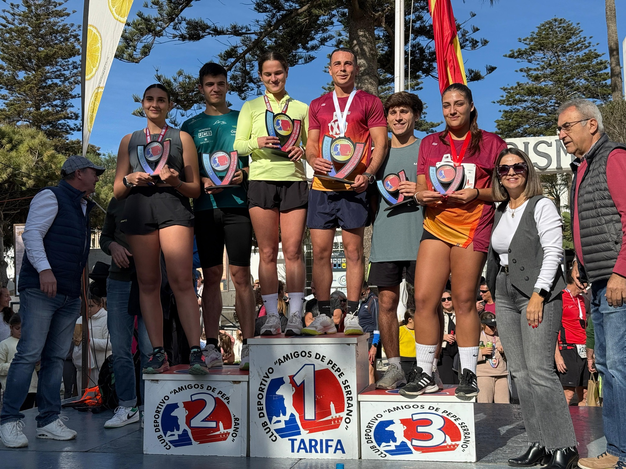 En el podio absoluto femenino ha estado integrado por Nazha Machrouh, Noemí Delgado Ramírez del C.D. Entrena Sevilla y Manuela Abio Gómez. Los tres primeros clasificados de cada categoría en las modalidades masculina y femenina han recibido sus respectivos premios de manos del alcalde de Tarifa, José Antonio Santos, la concejala de Deportes, Celia Rico y el representante de Tarifa Eco Resort Las Piñas como patrocinador principal.