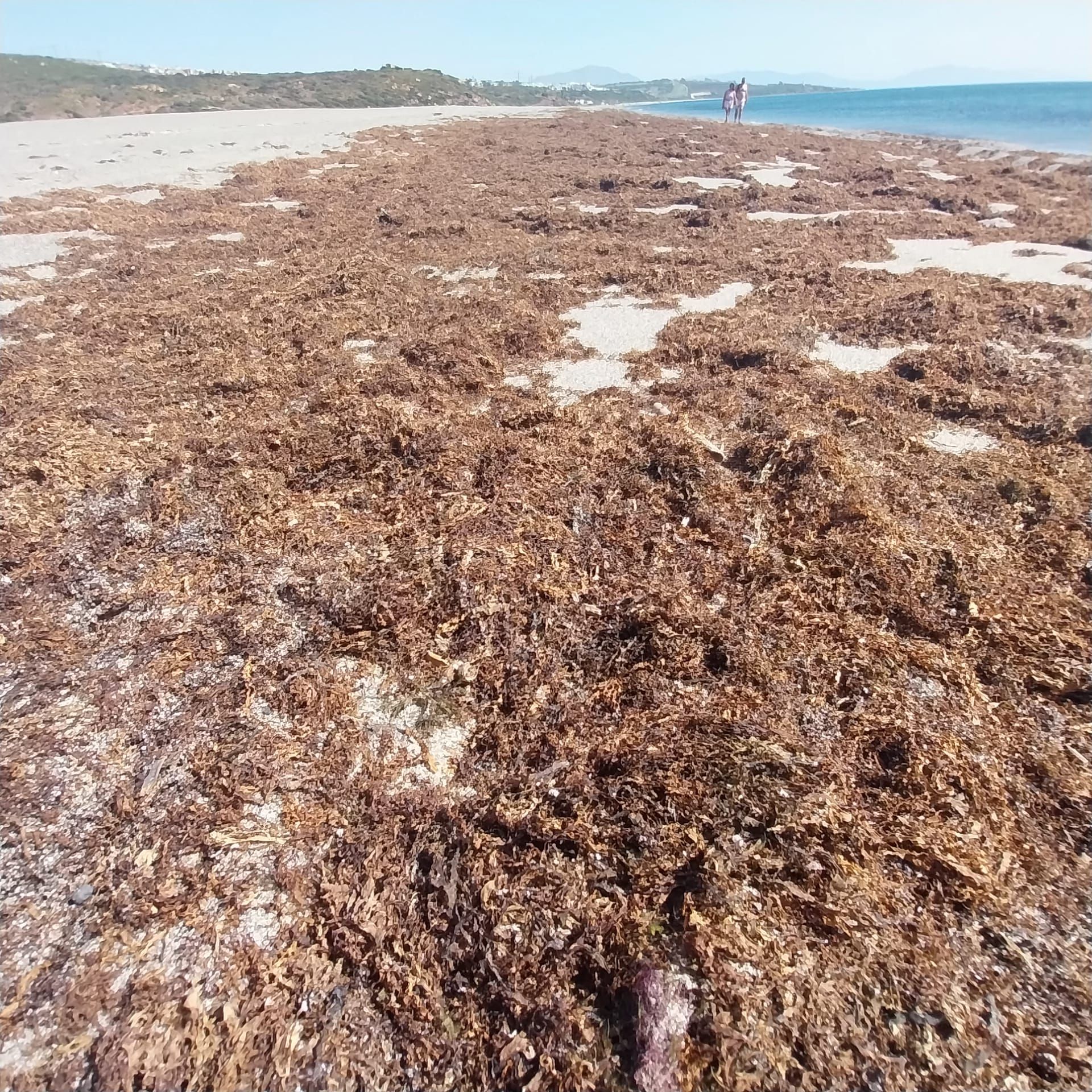 Las playas de Sobrevela y Alcaidesa han amanecido hoy lunes, 19 de agosto, cubiertas de algas asiáticas invasoras, cuya incidencia en el litoral de levante es cada vez mayor con cifras como los 22.000 kilos recogidos a principios de este mes.