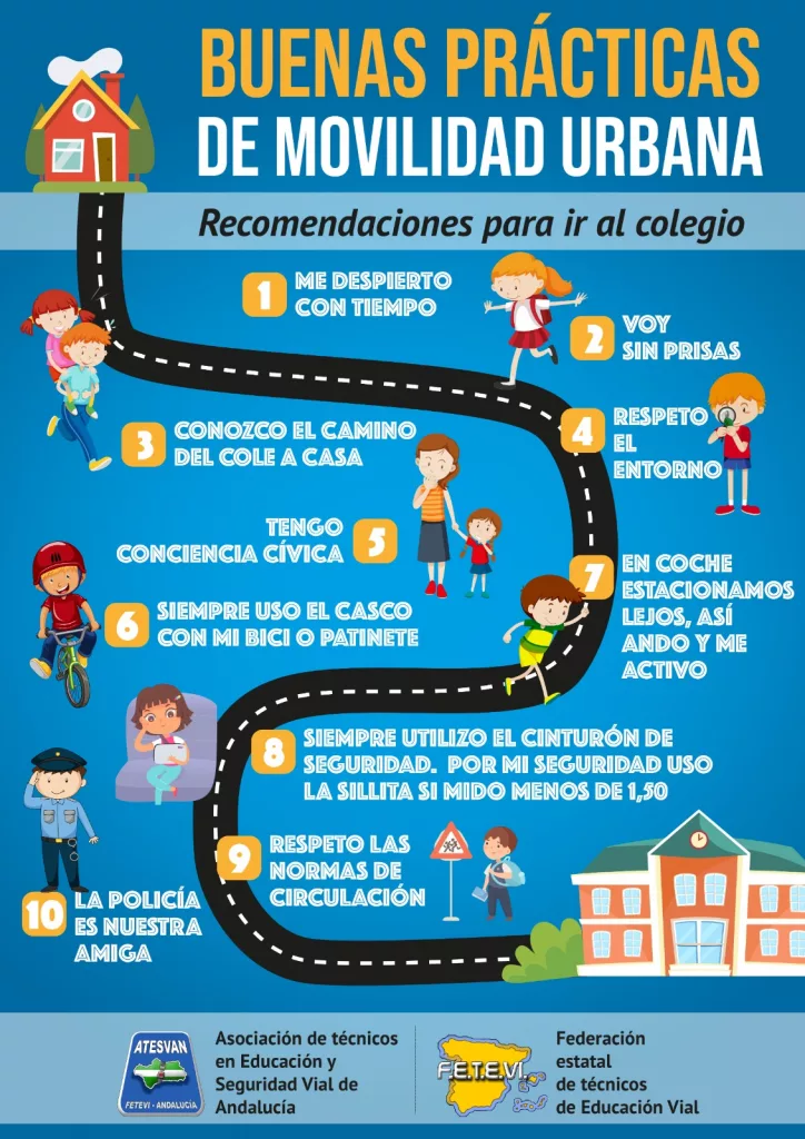 Entre estas recomendaciones se encuentran el despertarse con tiempo, dirigirse al colegio sin prisas y por un camino que el escolar conozca, respetar el entorno, tener conciencia cívica, usar siempre el casco cuando se monte en bicicleta o patinete, en caso de que el desplazamiento se realice en coche utilizar siempre el cinturón de seguridad y usar la silla si la altura del menor es inferior a un metro y medio; respetar las normas de circulación como peatón, pasajero o conductor, y tener claro que los policías locales son figuras amigas y están siempre para ayudar.
