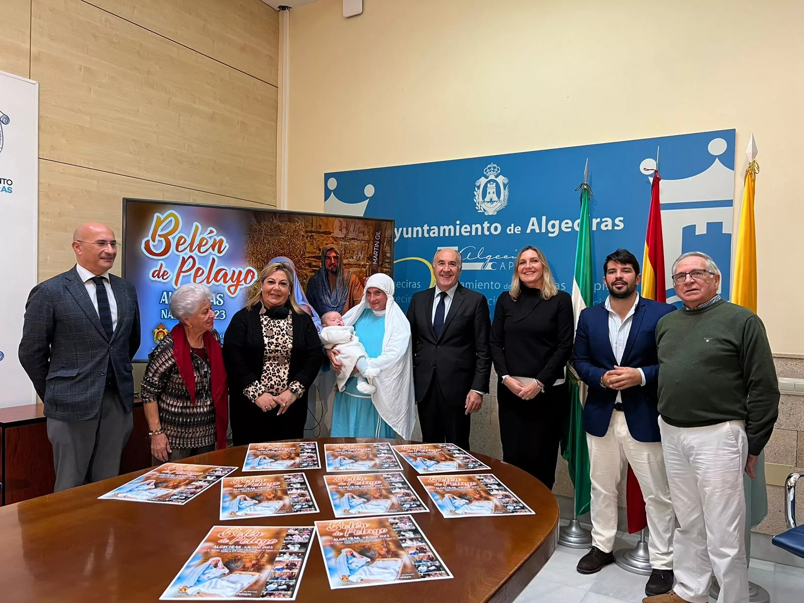 El alcade, José Ignacio Landaluce, acompañado de la teniente de alcalde delegada de Turismo, Susana Pérez; el teniente de alcalde delegado de Participación Ciudadana, Jorge Juliá, así como el delegado de Parques y Jardines, Ángel Martínez, ha presentado el cartel del Belén Viviente de Pelayo 2023.