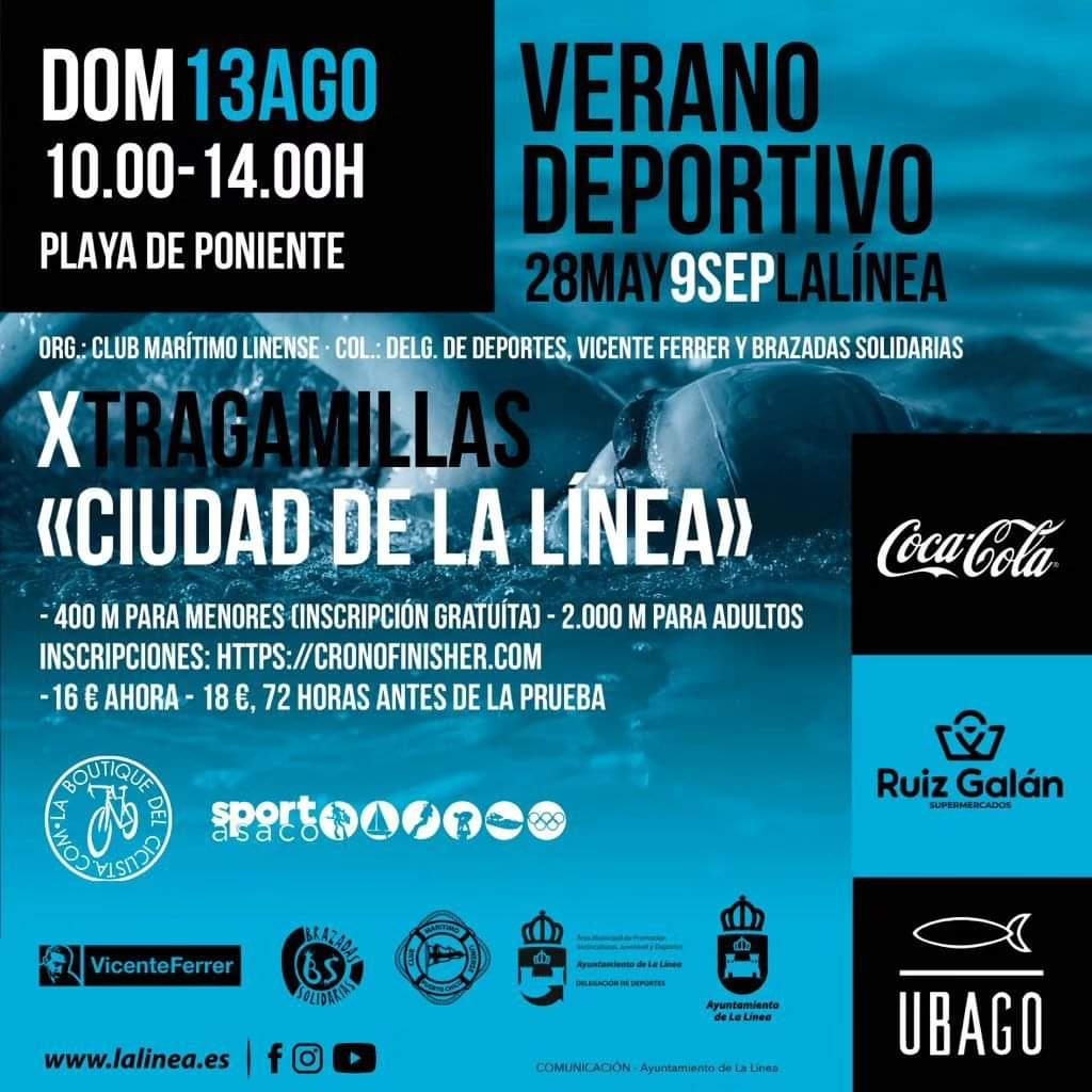 El domingo, 13 de agosto, se celebrará en la playa de Poniente la X edición del Tragamillas Ciudad de La Línea, una prueba de natación organizada por el Club Marítimo Linense y Brazadas Solidarias, en colaboración con la delegación de Deportes del Ayuntamiento de La Línea, a beneficio de la Fundación Vicente Ferrer.