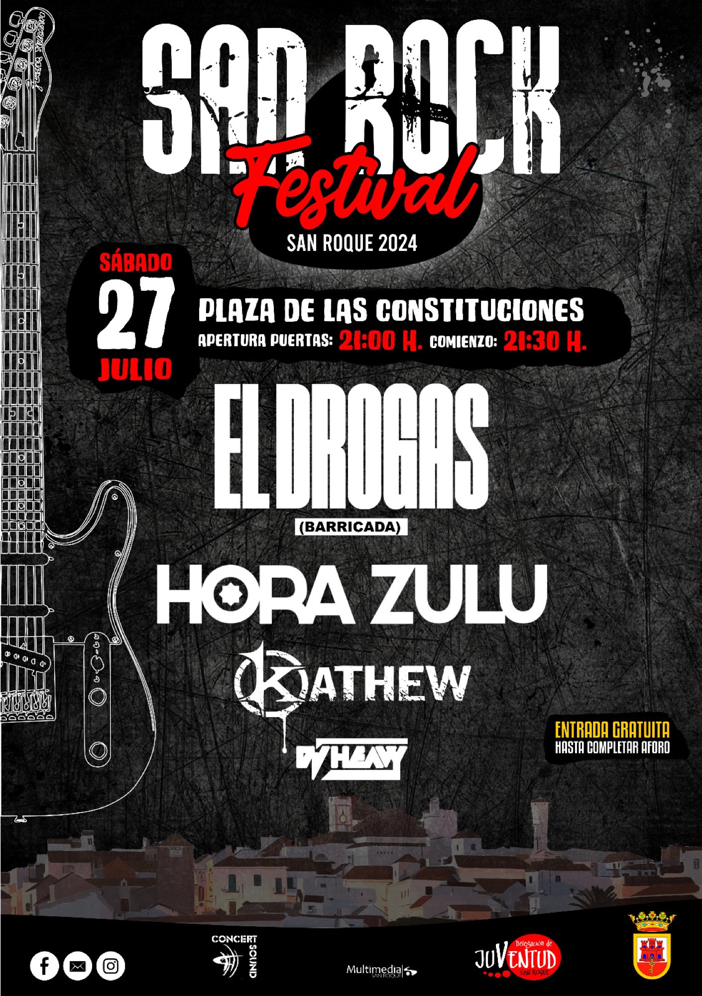 En “SanRock”, el sábado 27 de julio a las 21:30 horas, intervendrán “El Drogas” (componente del grupo Barricada); y los grupos locales Hora Zulú, Kathew, y el DJ Heavy.